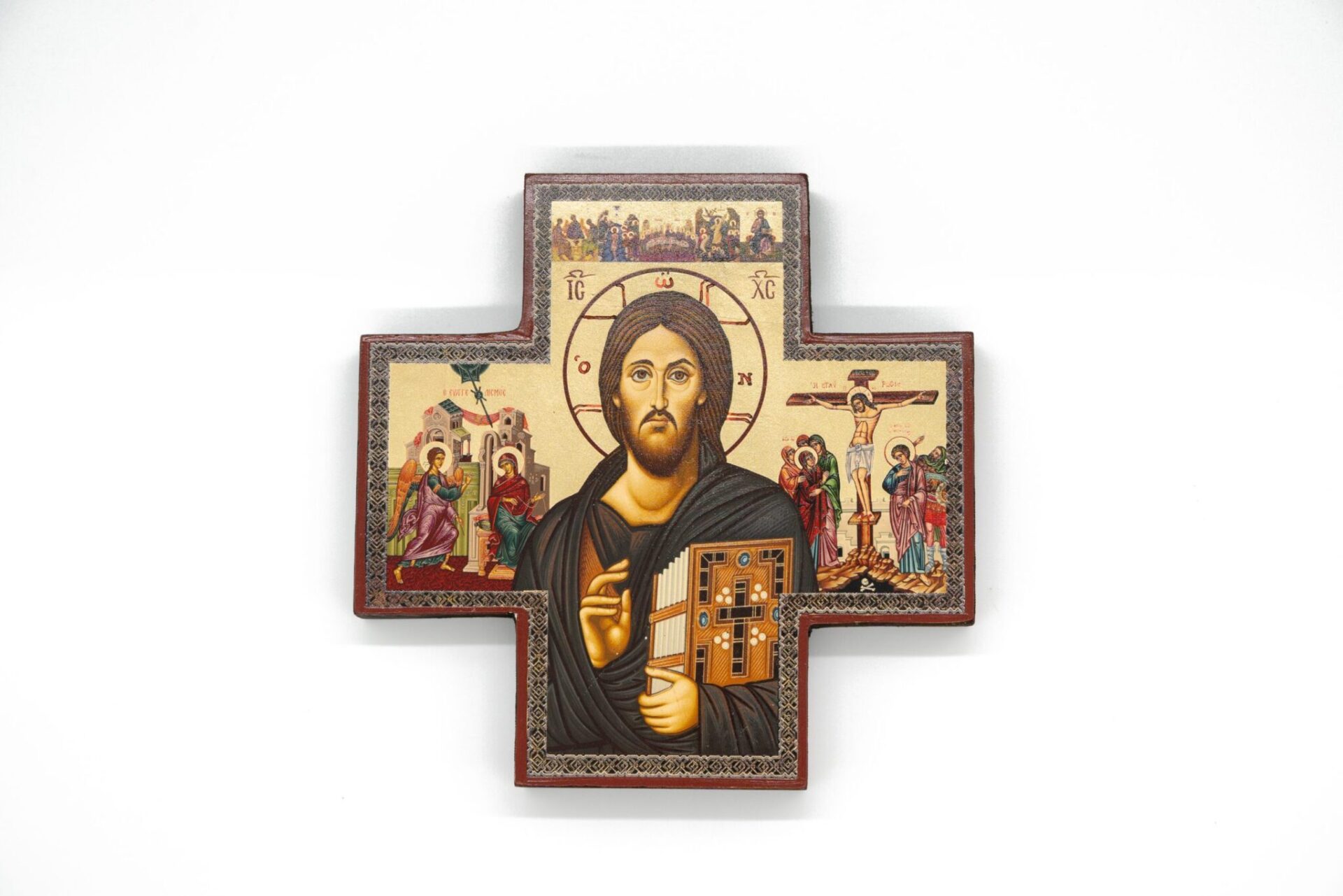 Crocifisso In Legno e corpo Cristo stilizzato Colorato 23 cm