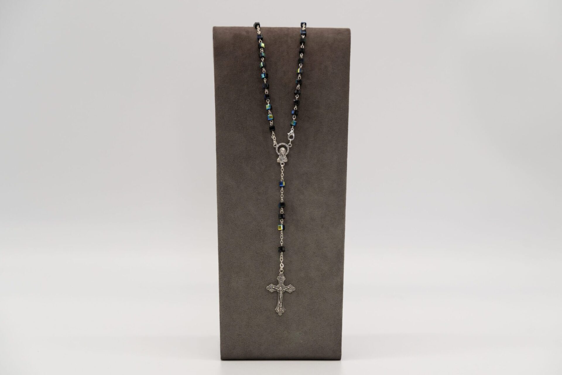 Rosario 7 Dolori (Addolorata) in Vetro Nero e Metallo 30cm