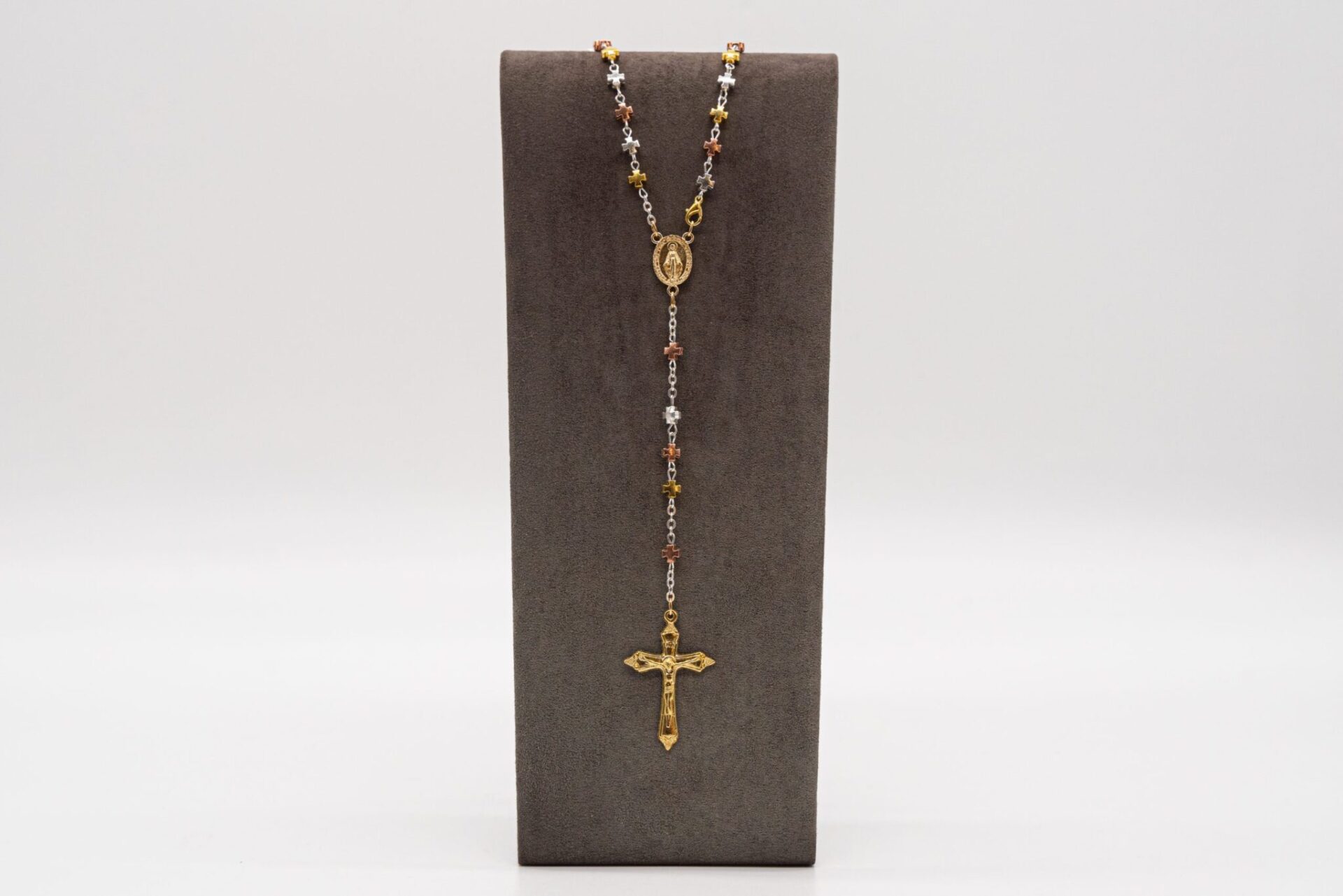 Rosario Marrone Ambrato in Metallo Dorato 50cm