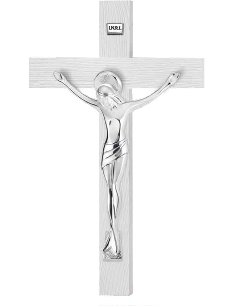 Crocifisso Bianco e corpo Cristo stilizzato di Argento lucido Valenti 23 cm