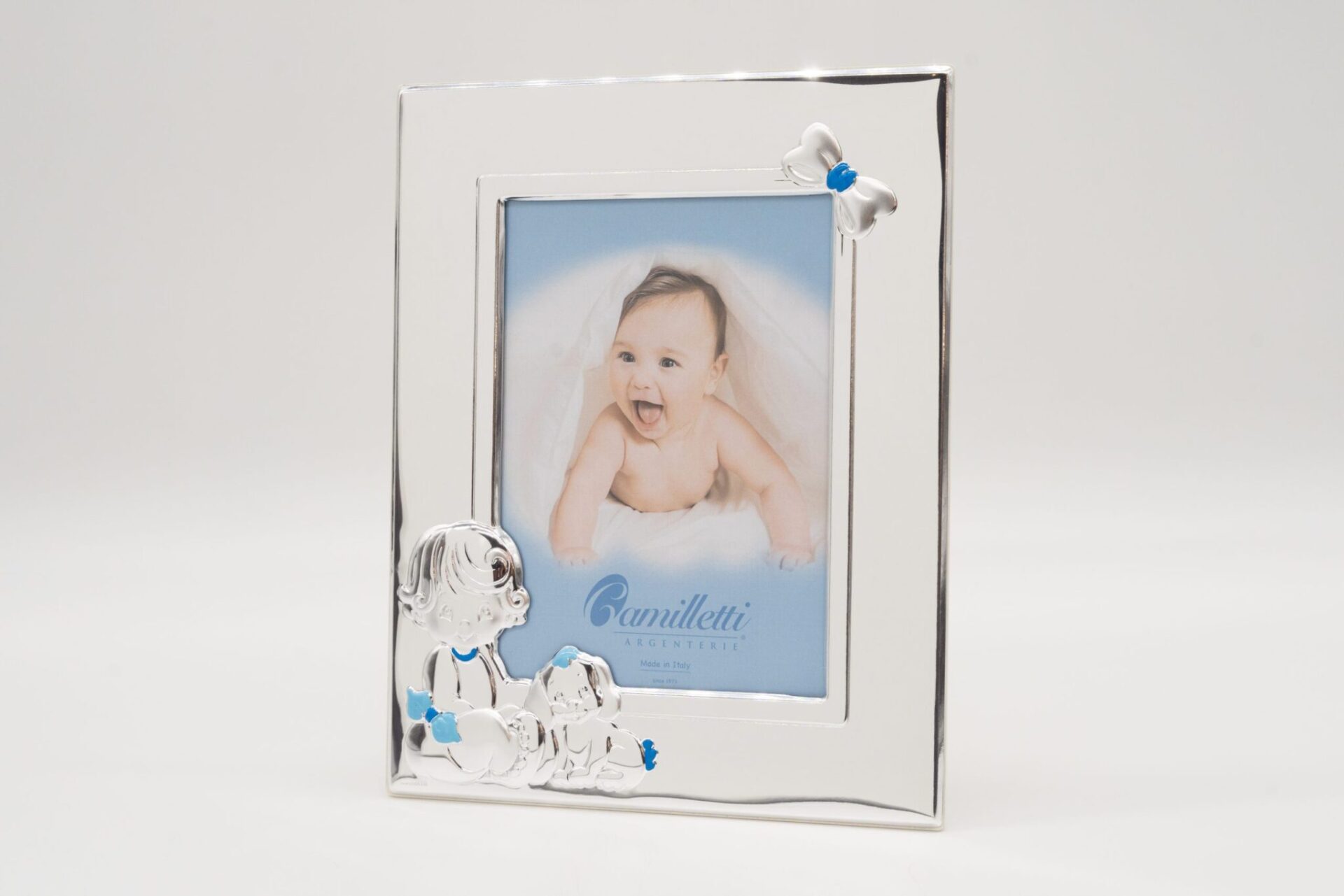 Cornice in Argento 999 con Angioletto con Cuore Azzurro