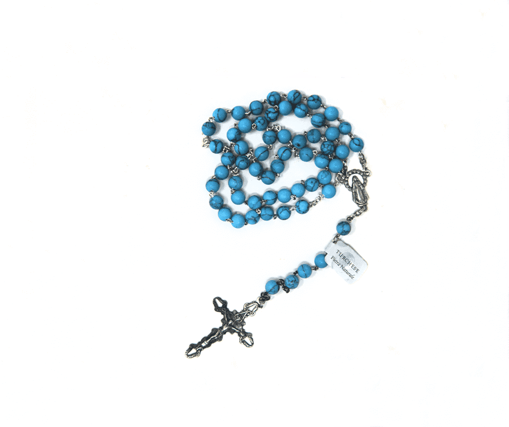 Collana Rosario con pendente e sfere lisce 3 mm in oro bianco 18k