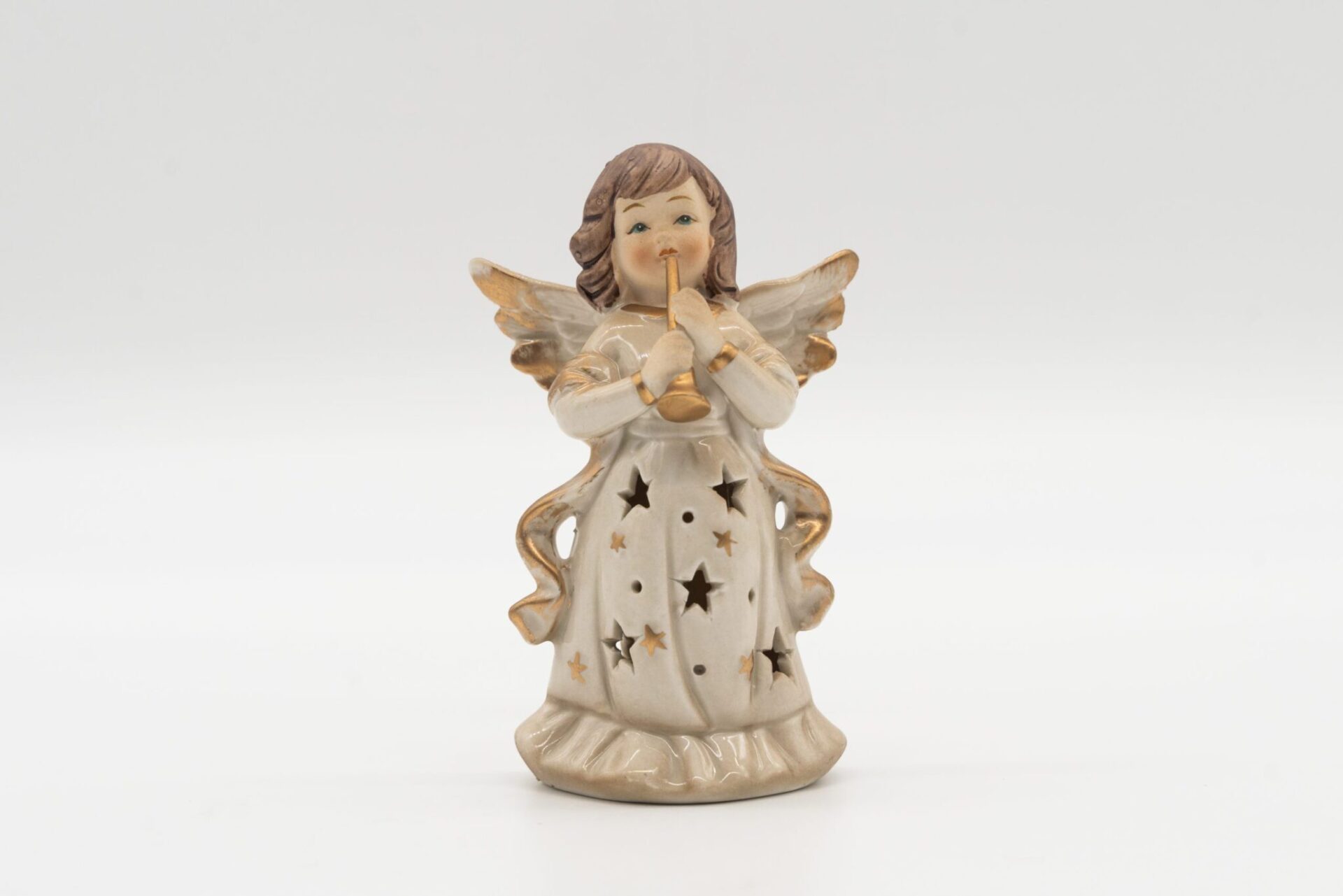 Angelo in Ceramica Con Flauto Luminoso 13 cm