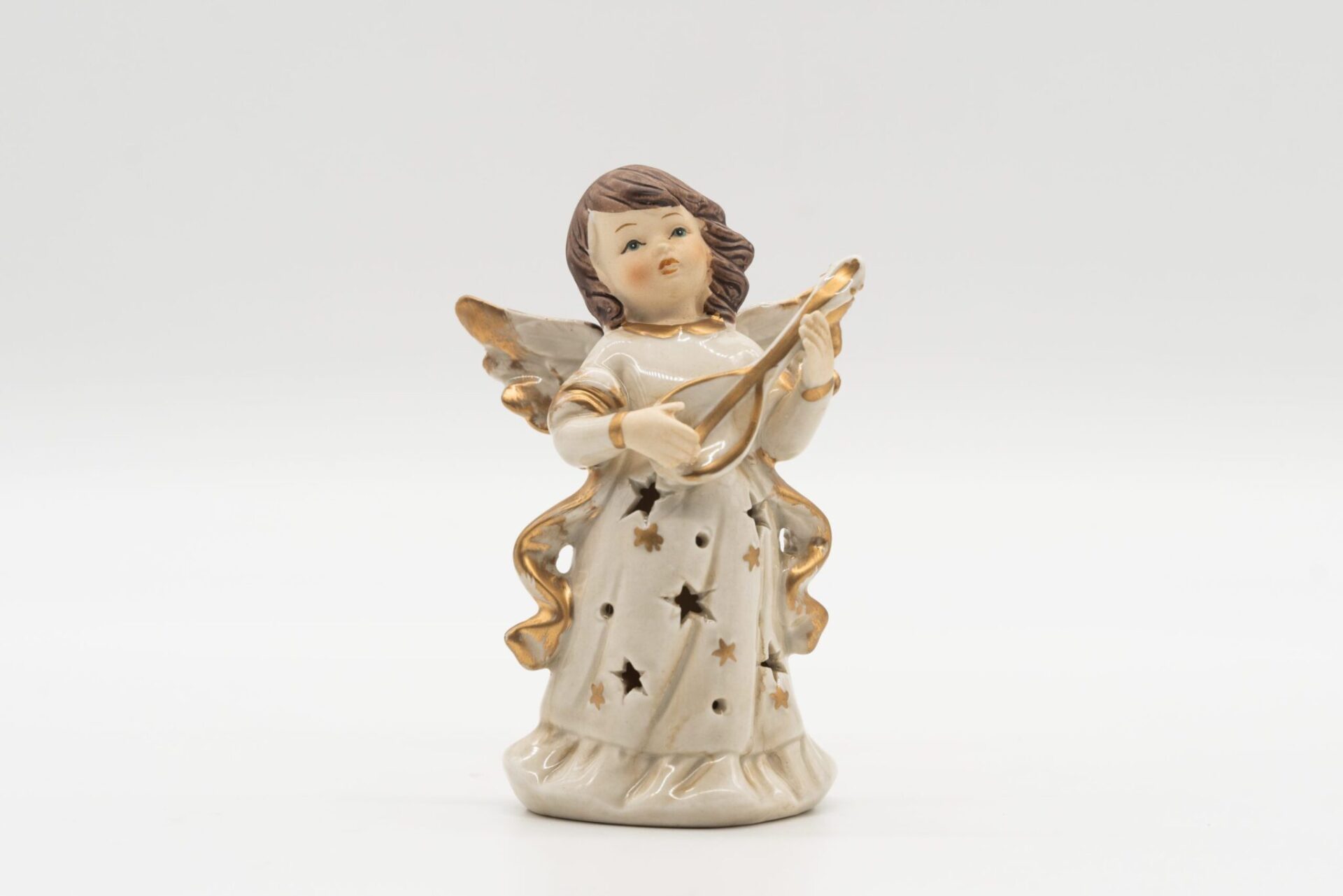 Angelo in Ceramica Con Mandolino Luminoso 13cm