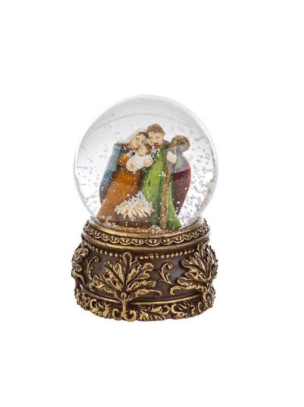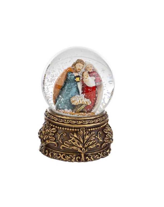 Ampolla Sacra Famiglia in resina bianco e oro 17cm