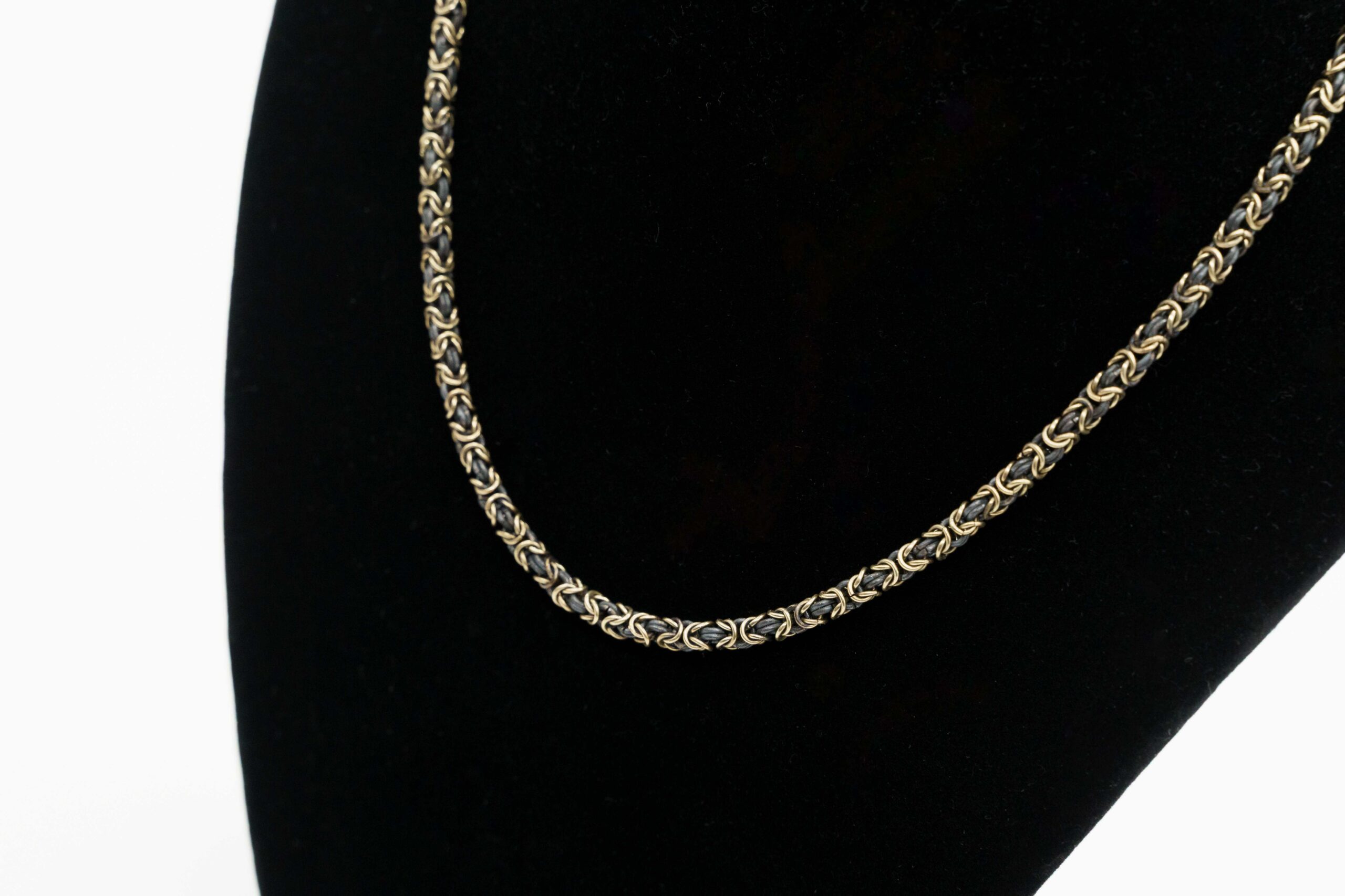Gold and Burnished Silver Byzantine Mesh Necklace