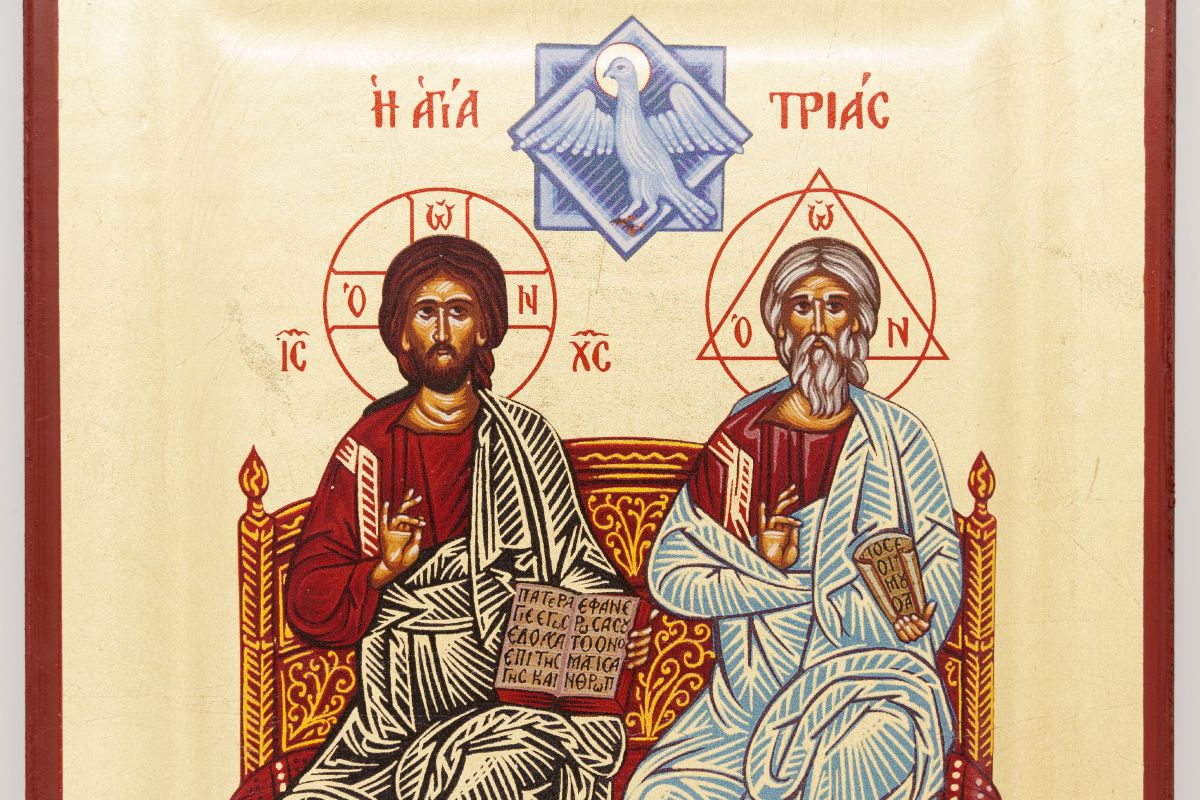 Icon, made of wood, depicts the Holy Trinity.