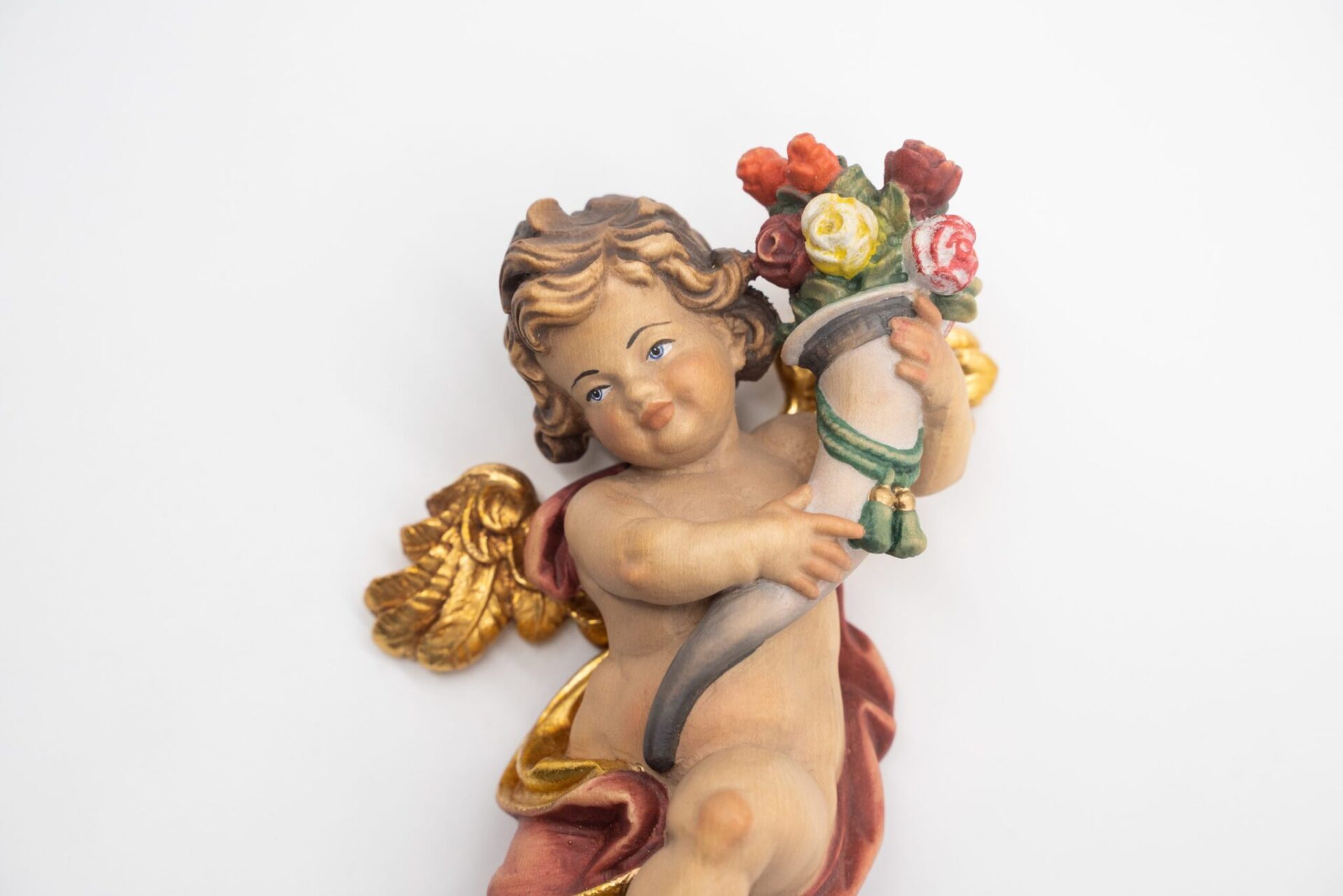 STATUA IN LEGNO ANGELO CON FIORI DESTRO