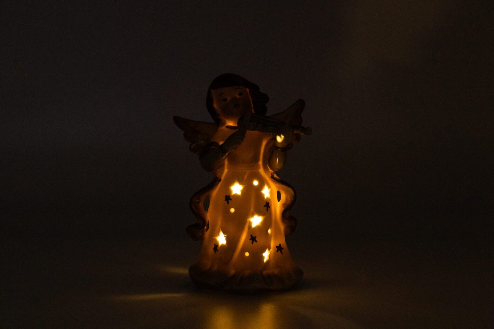 Statua a Forma di Angelo Che Suona Il Violino, Con Illuminazione Interna a Led