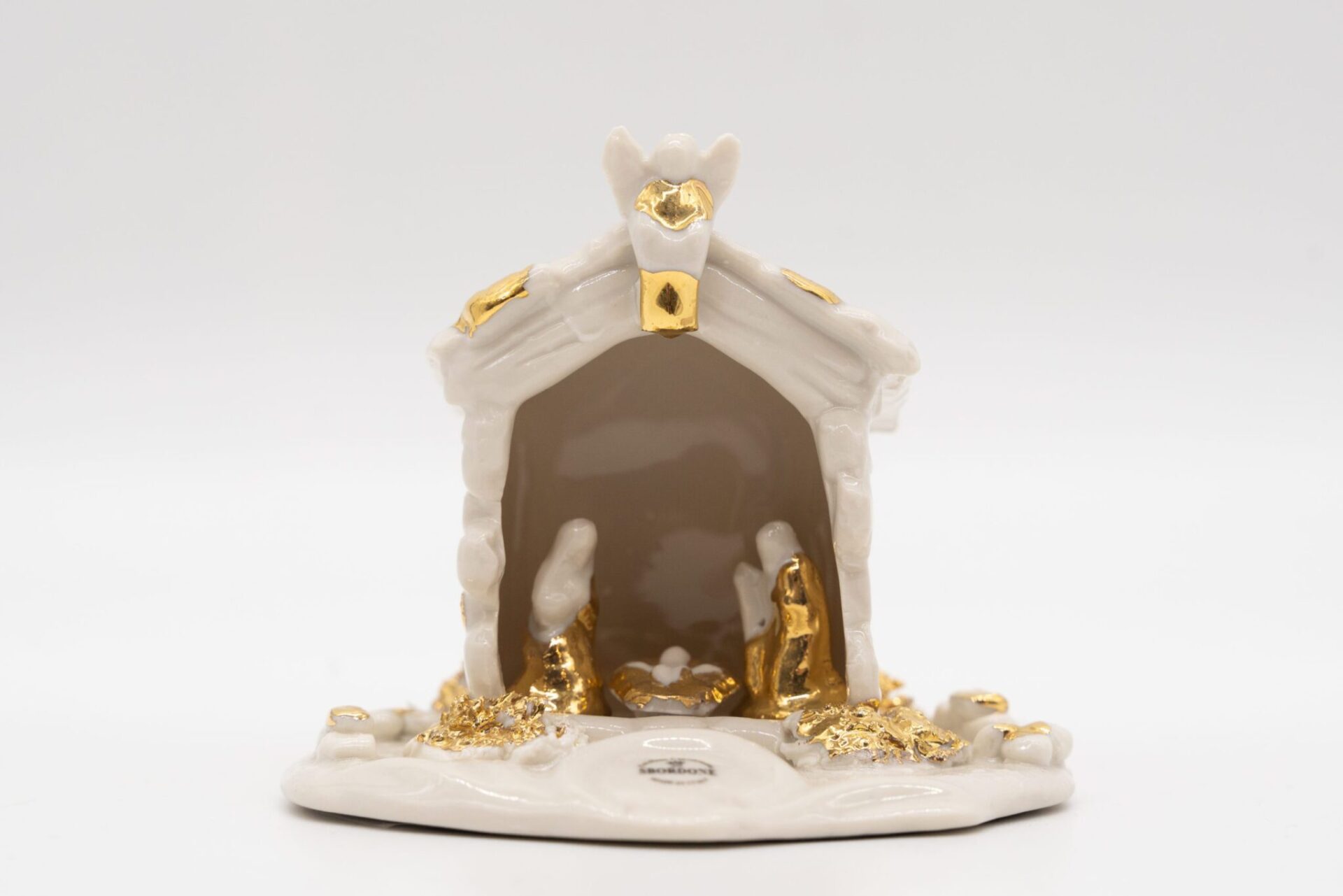 ANGELO IN PORCELLANA CAPODIMONTE CON UVA PROFILI IN ORO 24KT.