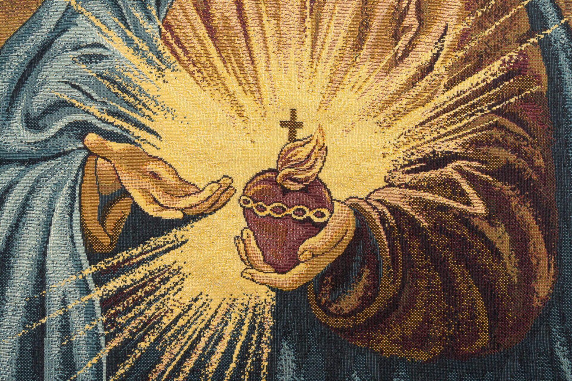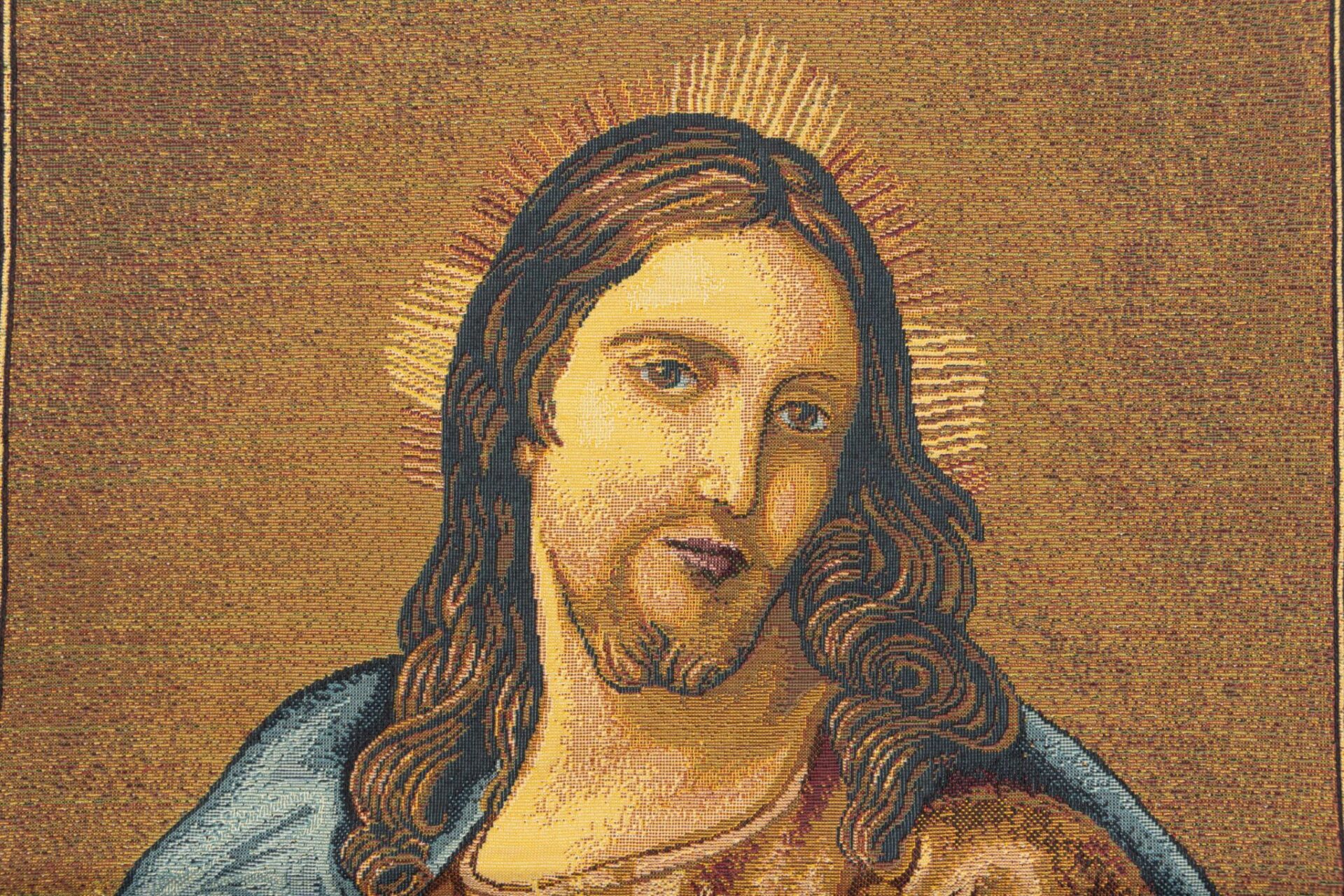Questo arazzo, raffigura il Sacro Cuore di Gesù.