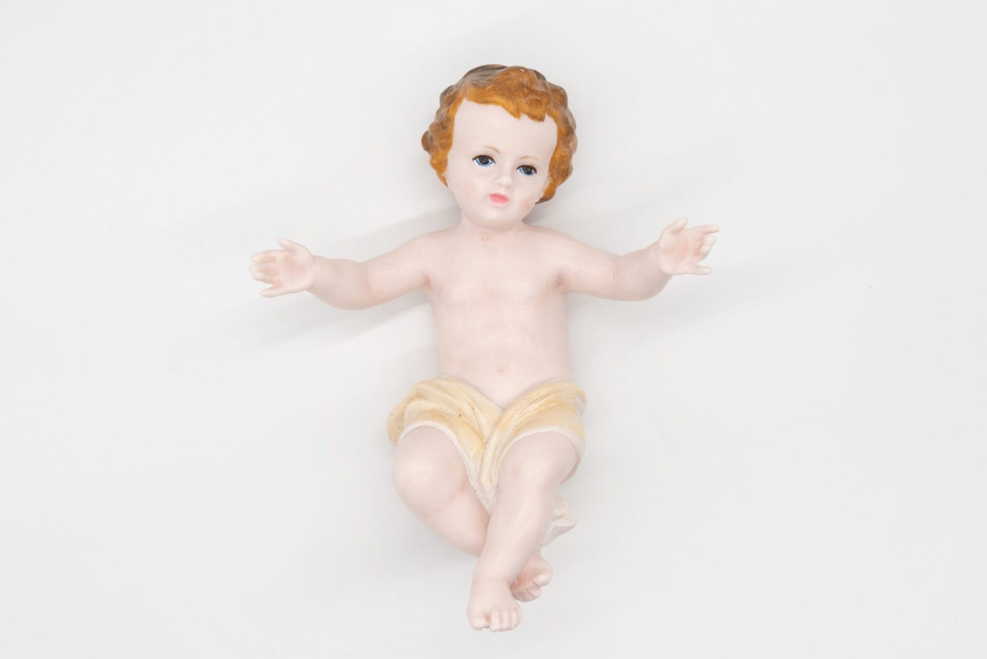 La statua è dipinta con colori pastello, che aggiungono delicatezza e realismo all’incarnato del bambino.