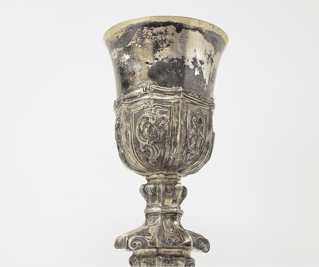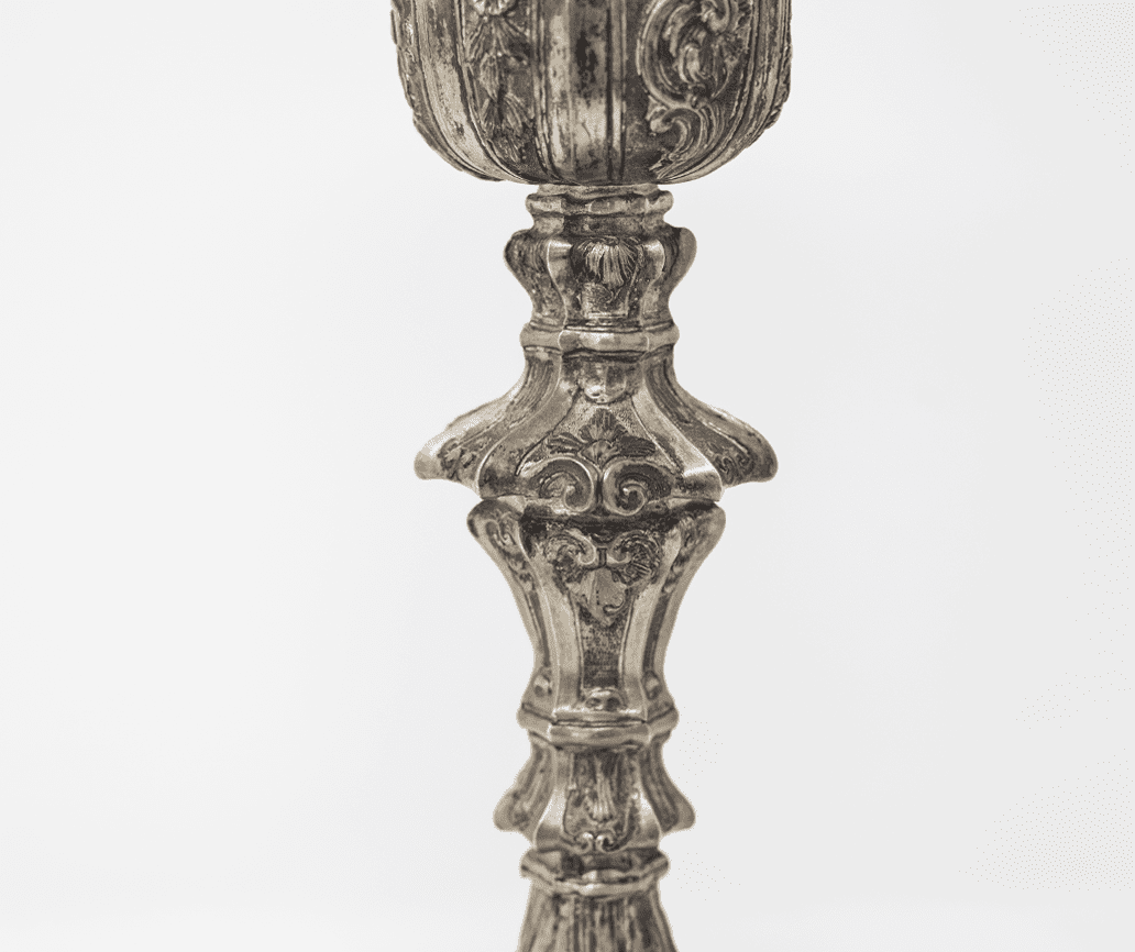 Questo calice rappresenta un esempio perfetto di come l’arte barocca riesca a combinare funzionalità e bellezza, creando un oggetto di grande valore estetico e spirituale.