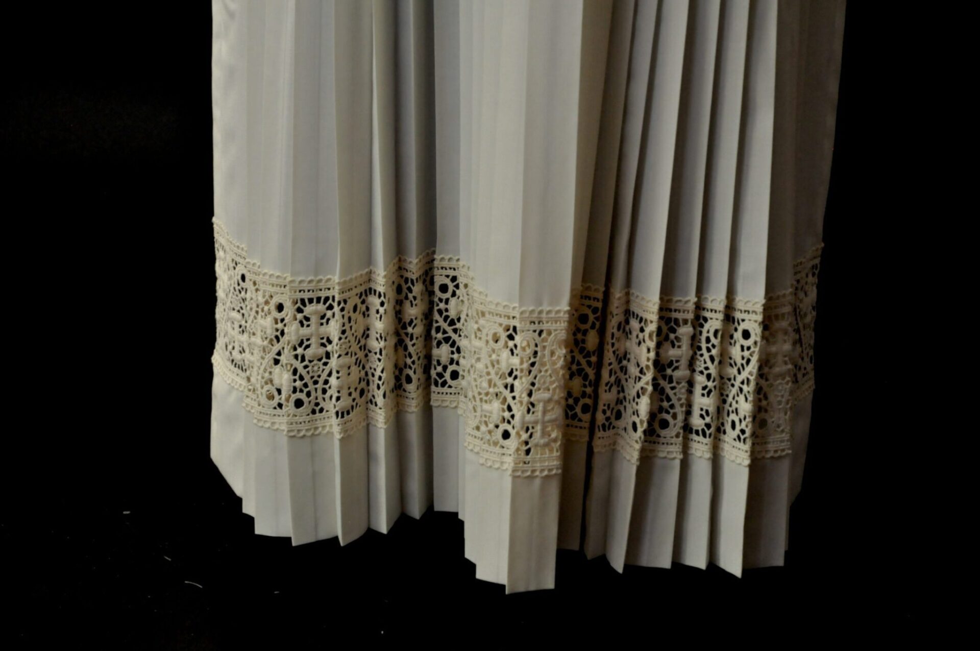 Camice misto lana plissettato con entredeux croci su fondo e maniche.