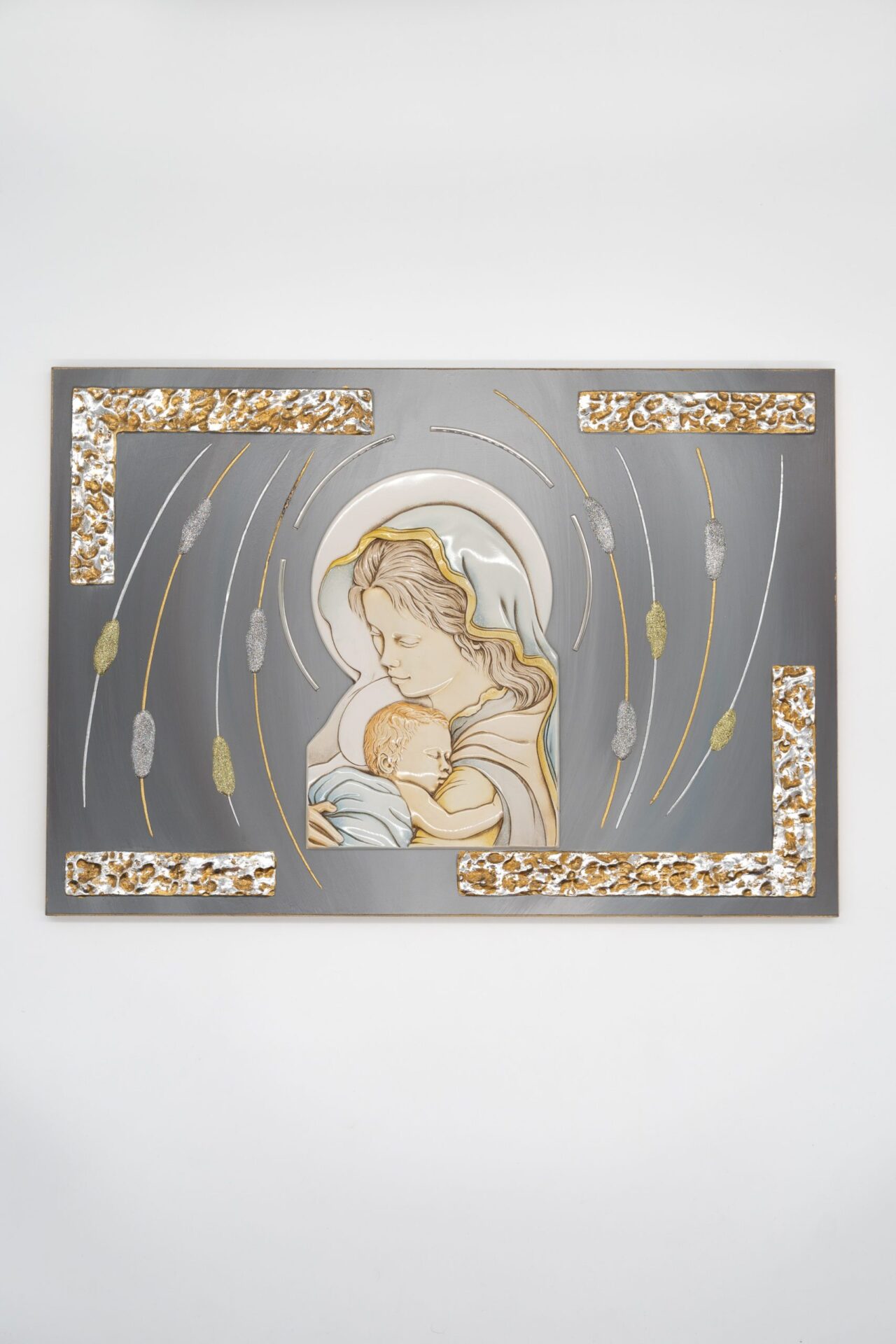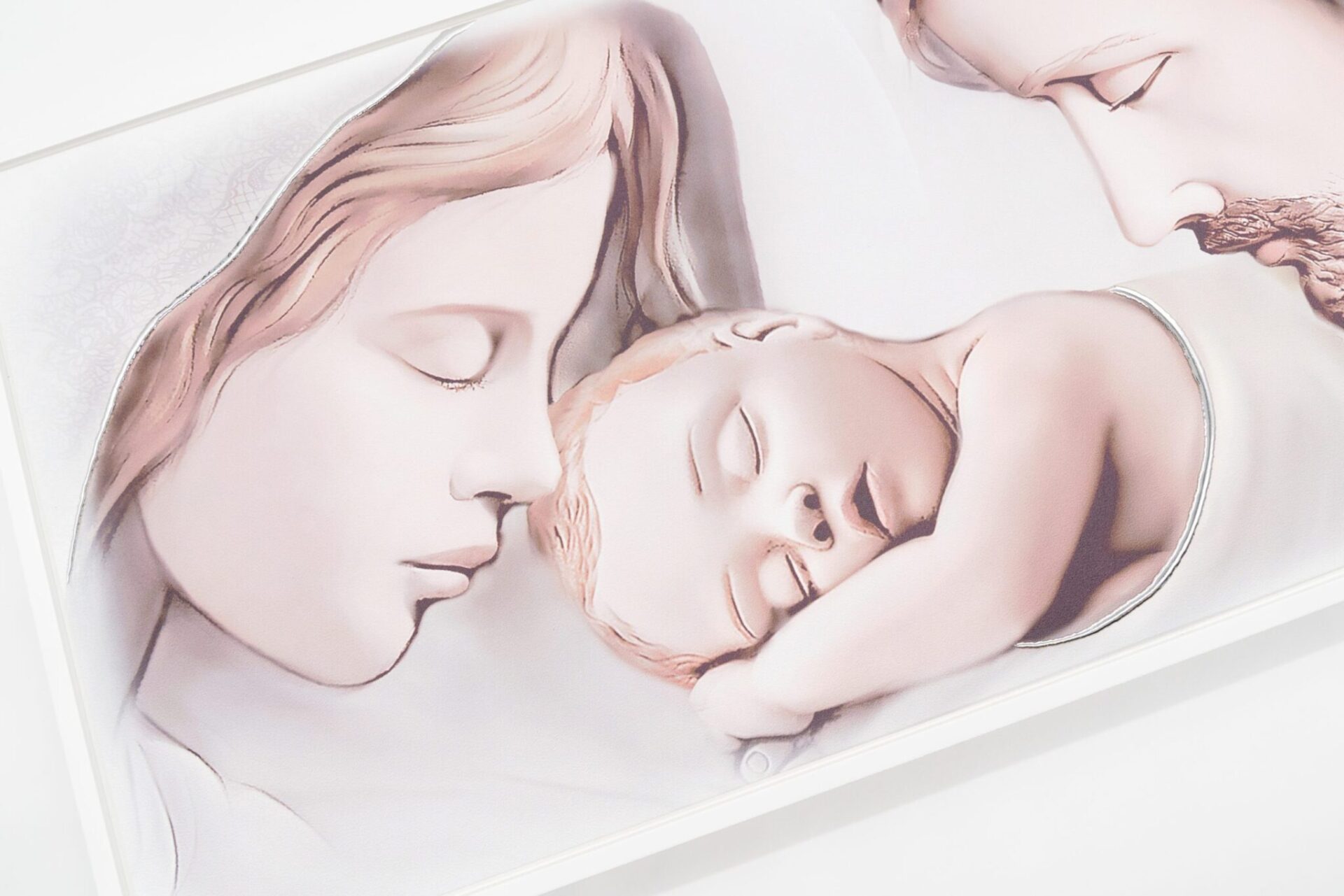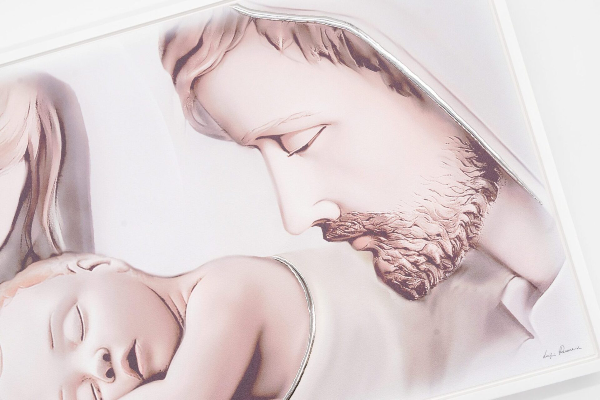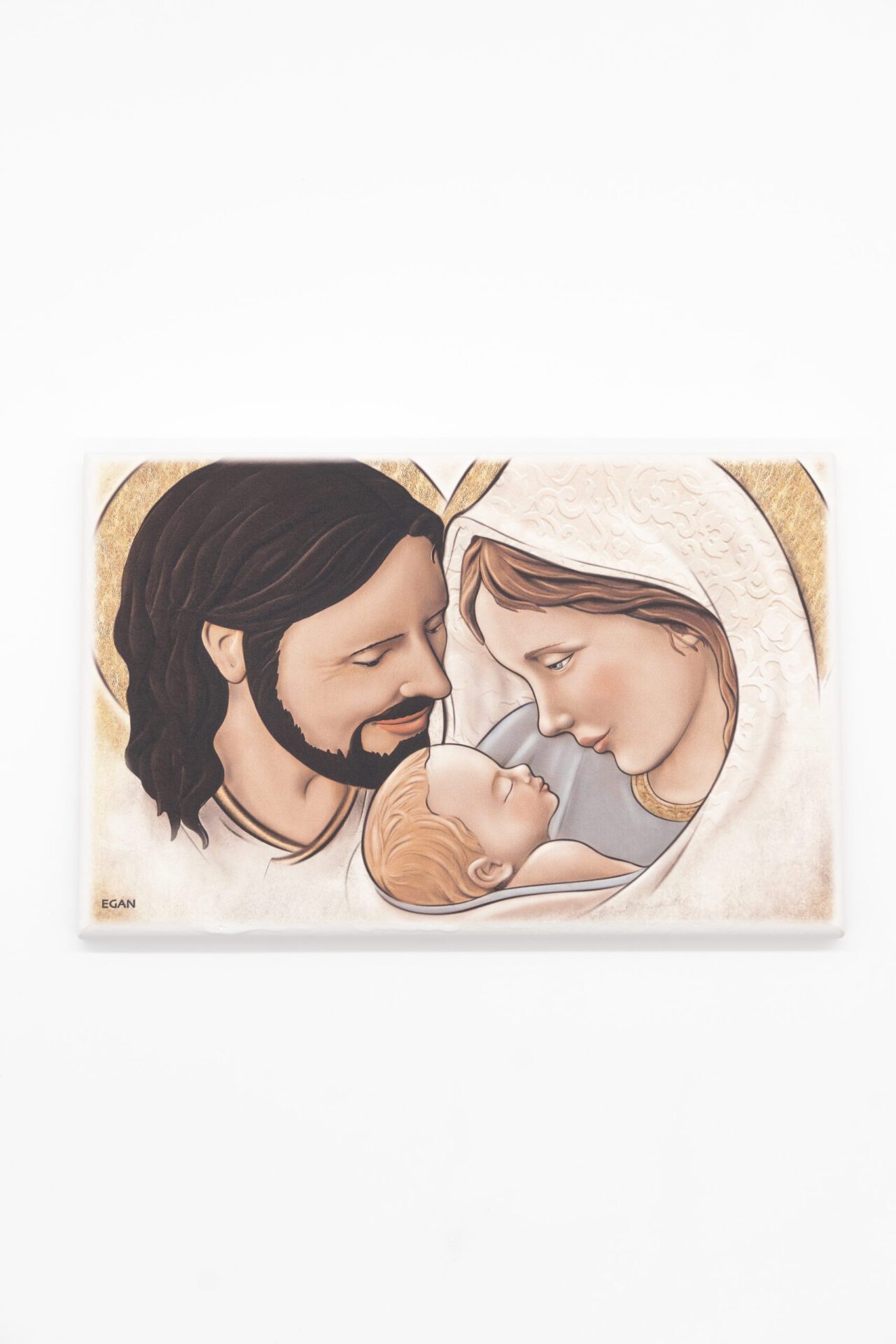 Raffigura la Sacra Famiglia, con la Vergine Maria, San Giuseppe e il Bambino Gesù.