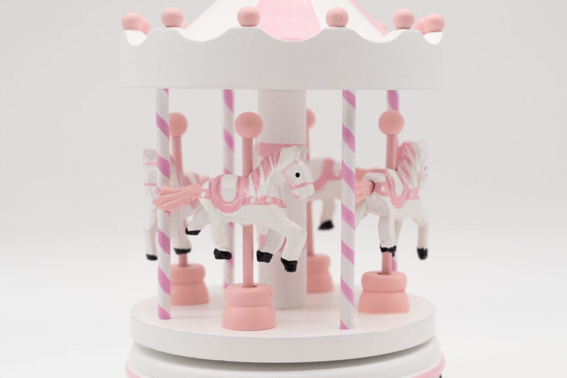 Un bellissimo Carillon a forma di giostrina , decorata con molta cura e dettagli artistici.