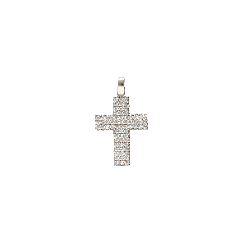 Ciondolo Croce con Zirconi Bianchi in Oro 18kt
