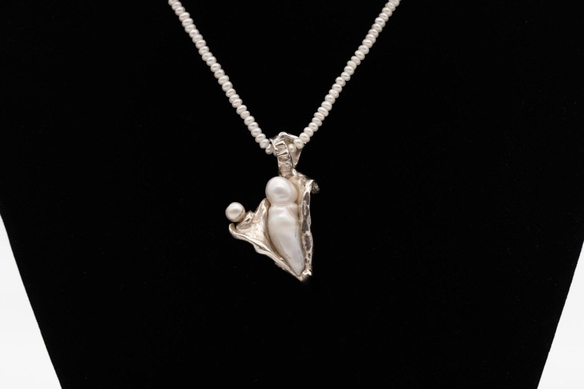 Ciondolo in argento a fusione a cera persa con perle barocche e con girocollo 20cm, un dettaglio di pregio per la vita quotidiana e adatto anche per le occasioni più formali. Edizione in esclusiva per Omnia Sacra.