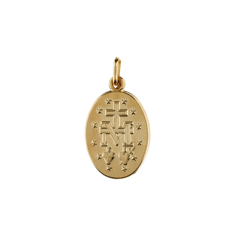 Ciondolo medaglia Madonna Miracolosa realizzato in oro giallo 18kt.
