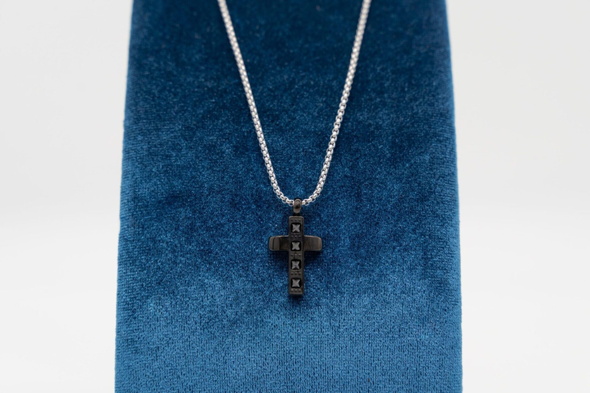 Collana con Croce in Acciaio Nero PVD con Zircone Nero