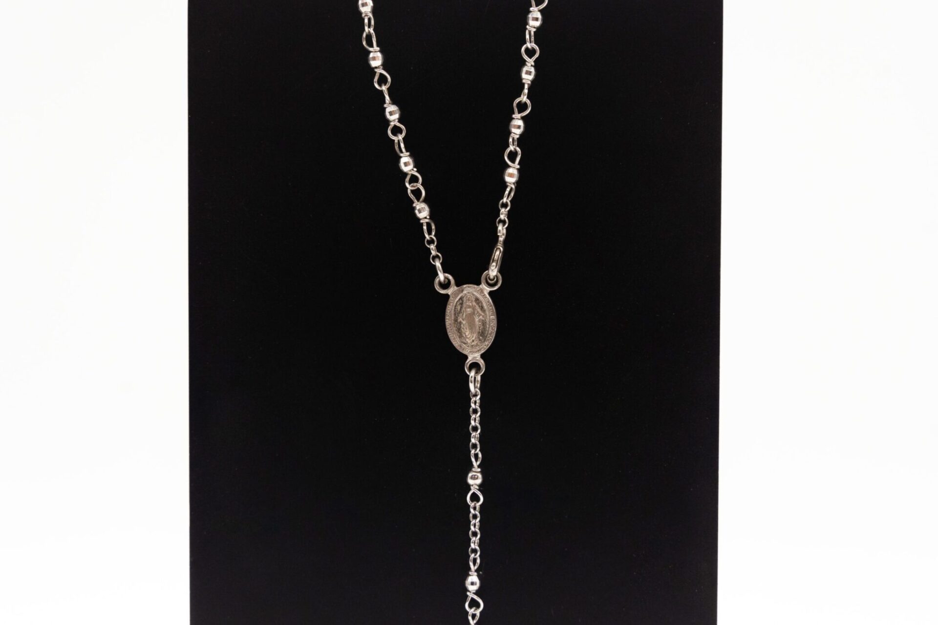 La collana è in argento con una croce pendente realizzata con grande attenzione ai dettagli e dimostra un’eccellente maestria nella lavorazione. Questo tipo di gioielleria non è solo un simbolo di fede, ma anche un’opera d’arte sacra.