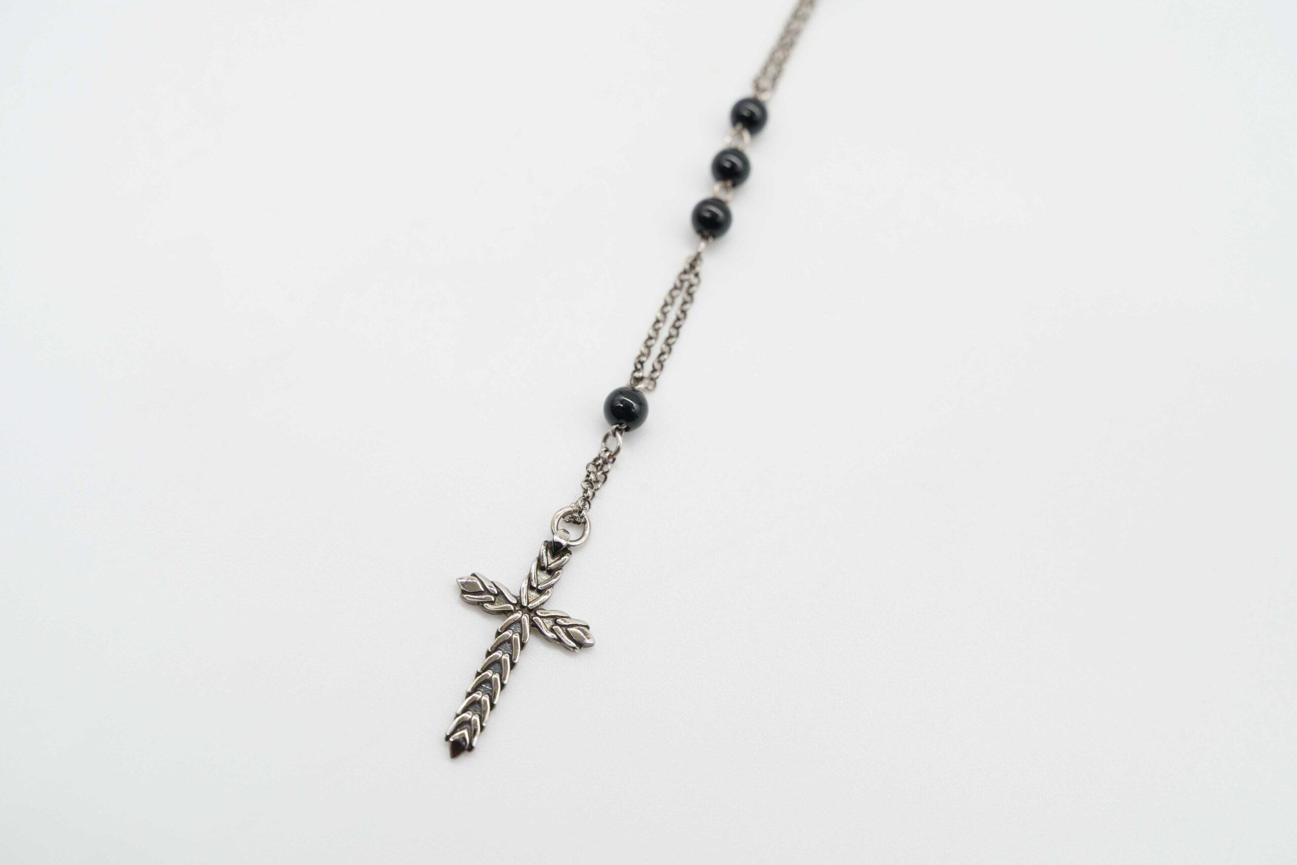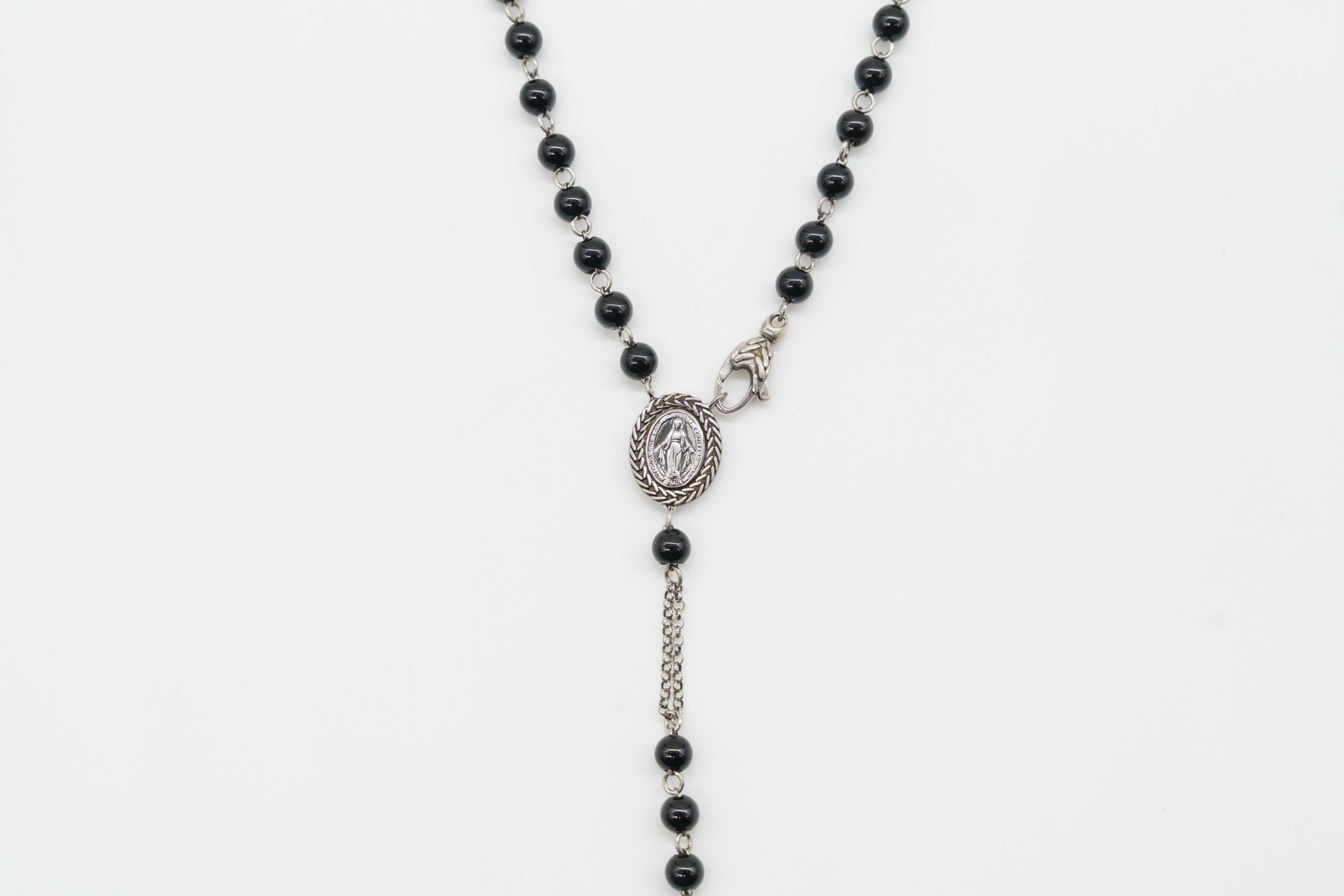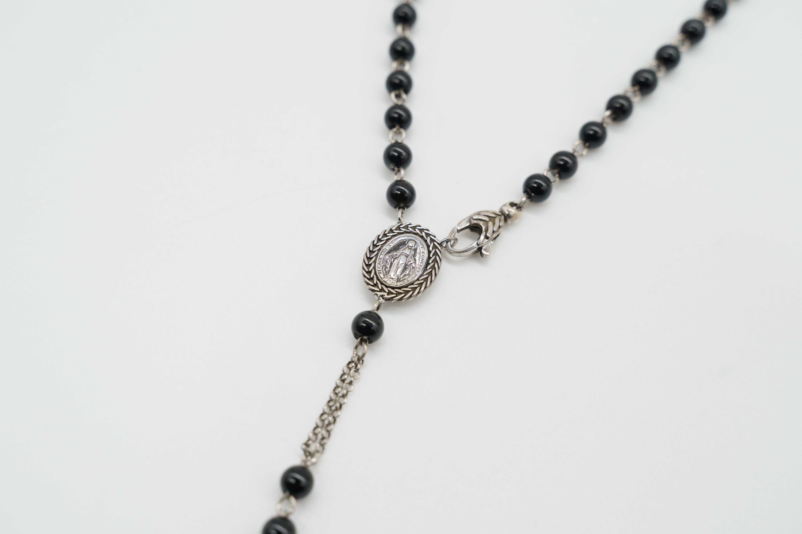 Materiali pregiati: realizzata con sfere in onice nero, ogni grano è un simbolo di spiritualità e protezione. I componenti metallici, finemente lavorati, conferiscono resistenza e raffinatezza.