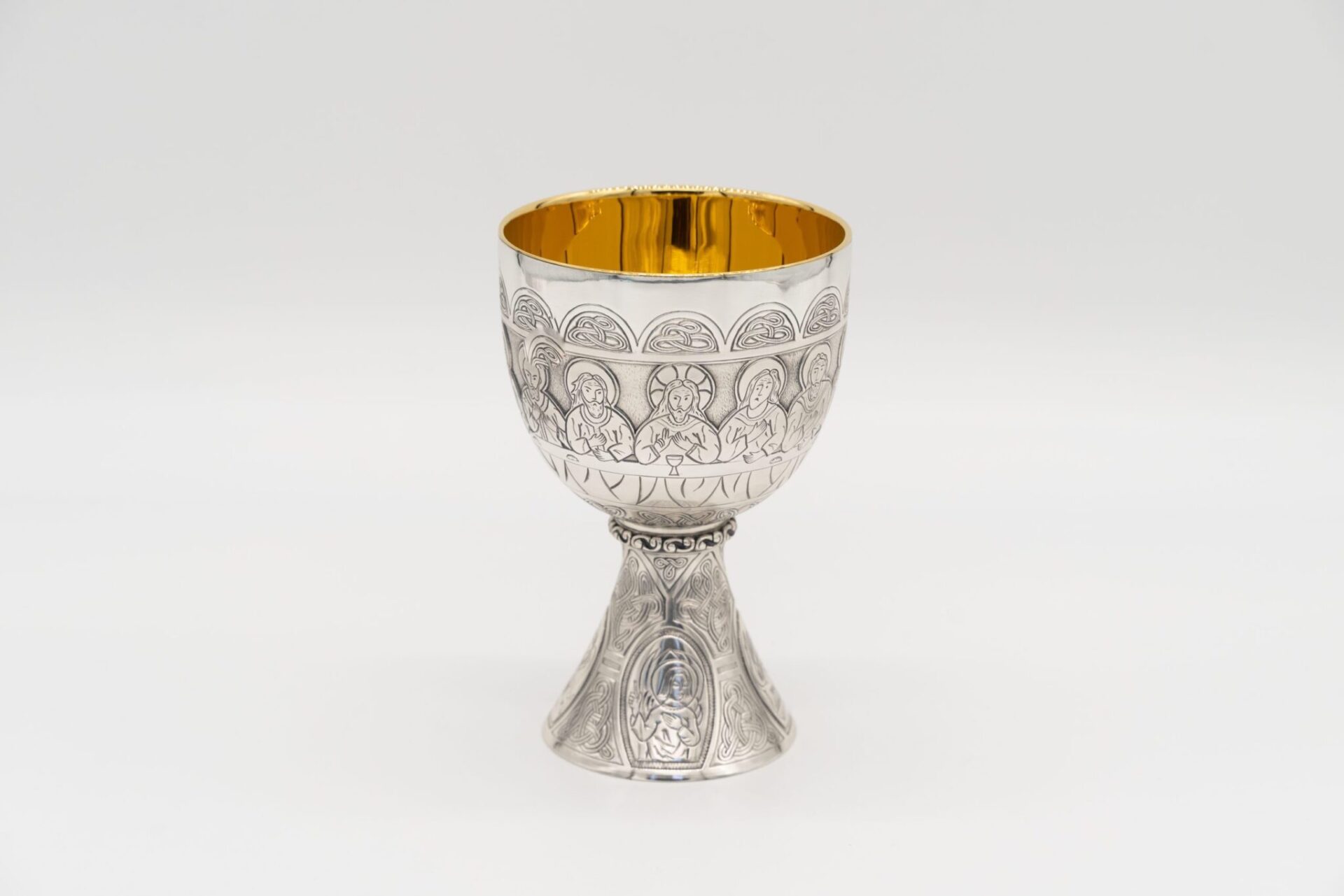 Il calice e la pisside sono progettati per essere proporzionati e funzionali, con una base larga e stabile, un gambo sottile e una coppa ampia.