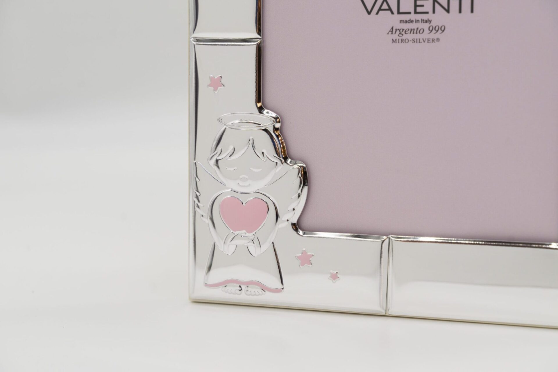 Cornice in Argento 999 con Angioletto con Cuore Rosa