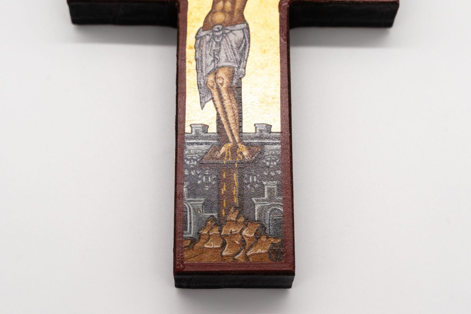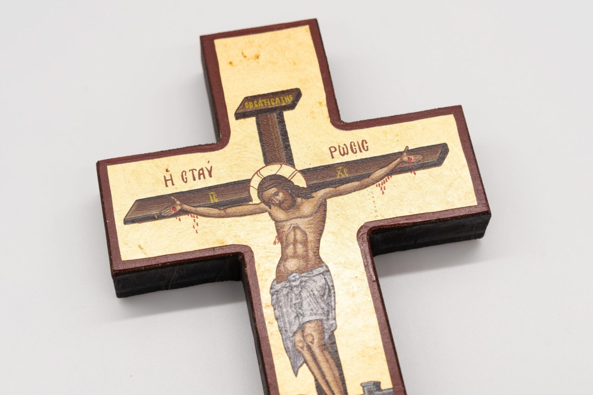 L’icona Bizantina, a forma di croce, rappresenta Cristo morente.