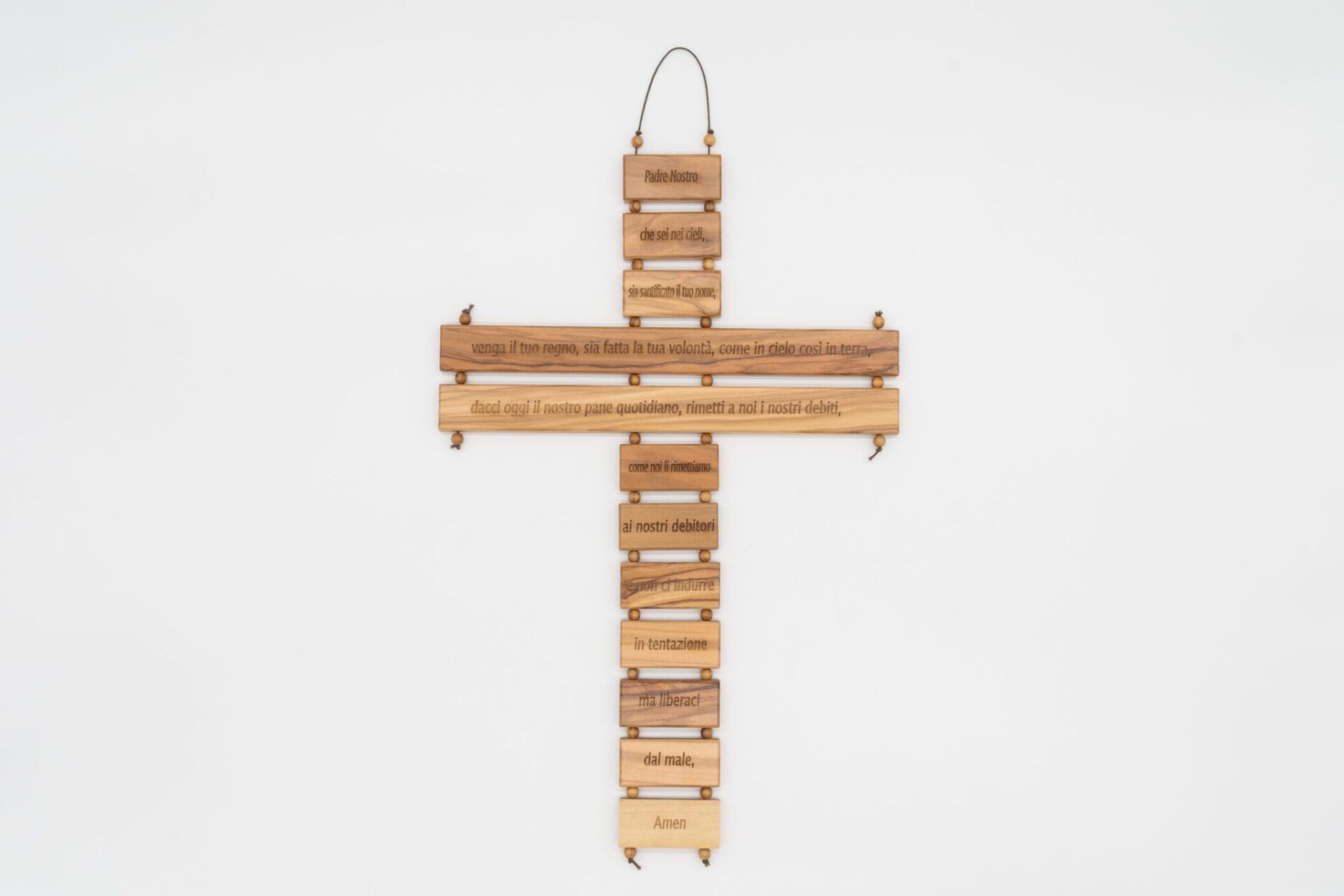 Il “Crocifisso in Legno di Ulivo con Padre Nostro” è un’opera d’arte spirituale che combina la bellezza naturale del legno d’ulivo con la potenza delle preghiere cristiane.