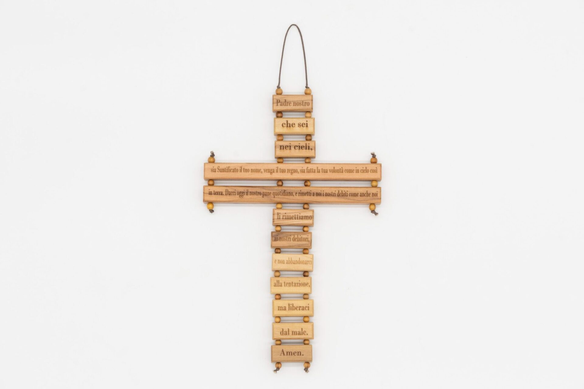 Su questo crocifisso è incisa la preghiera del Padre Nostro, rendendolo un simbolo di fede e devozione profonda.