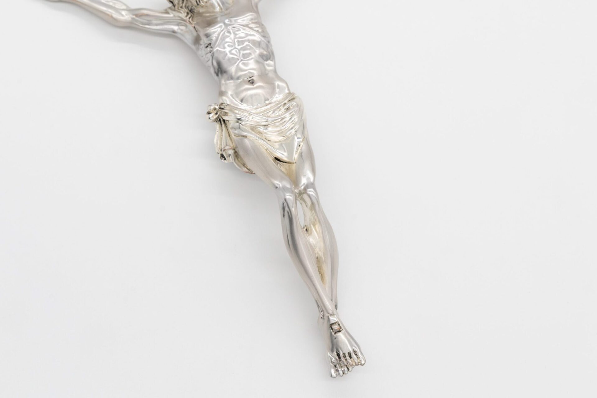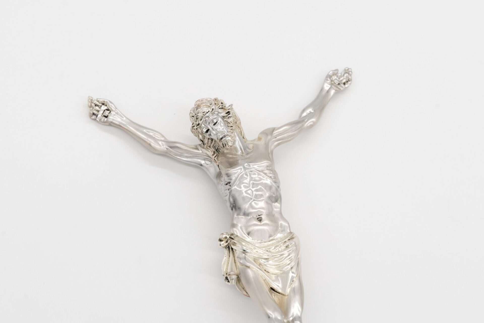 Il corpo di Cristo in argento è una rappresentazione sacra che unisce eleganza e significato spirituale.