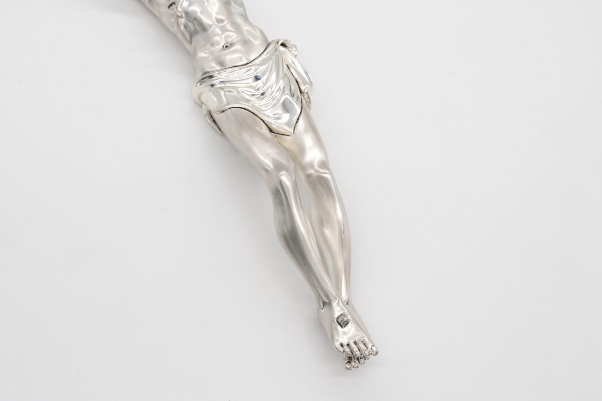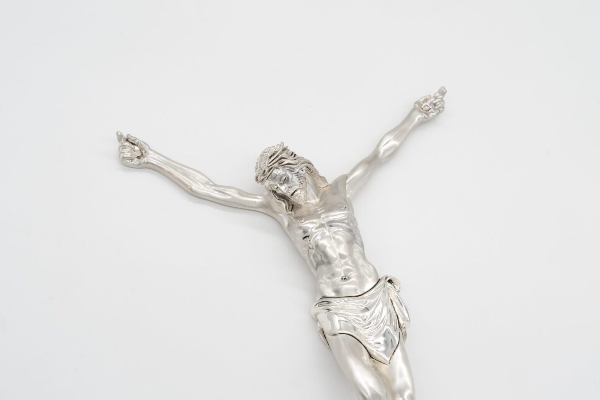 Il corpo di Cristo in argento è una rappresentazione sacra che unisce eleganza e significato spirituale.