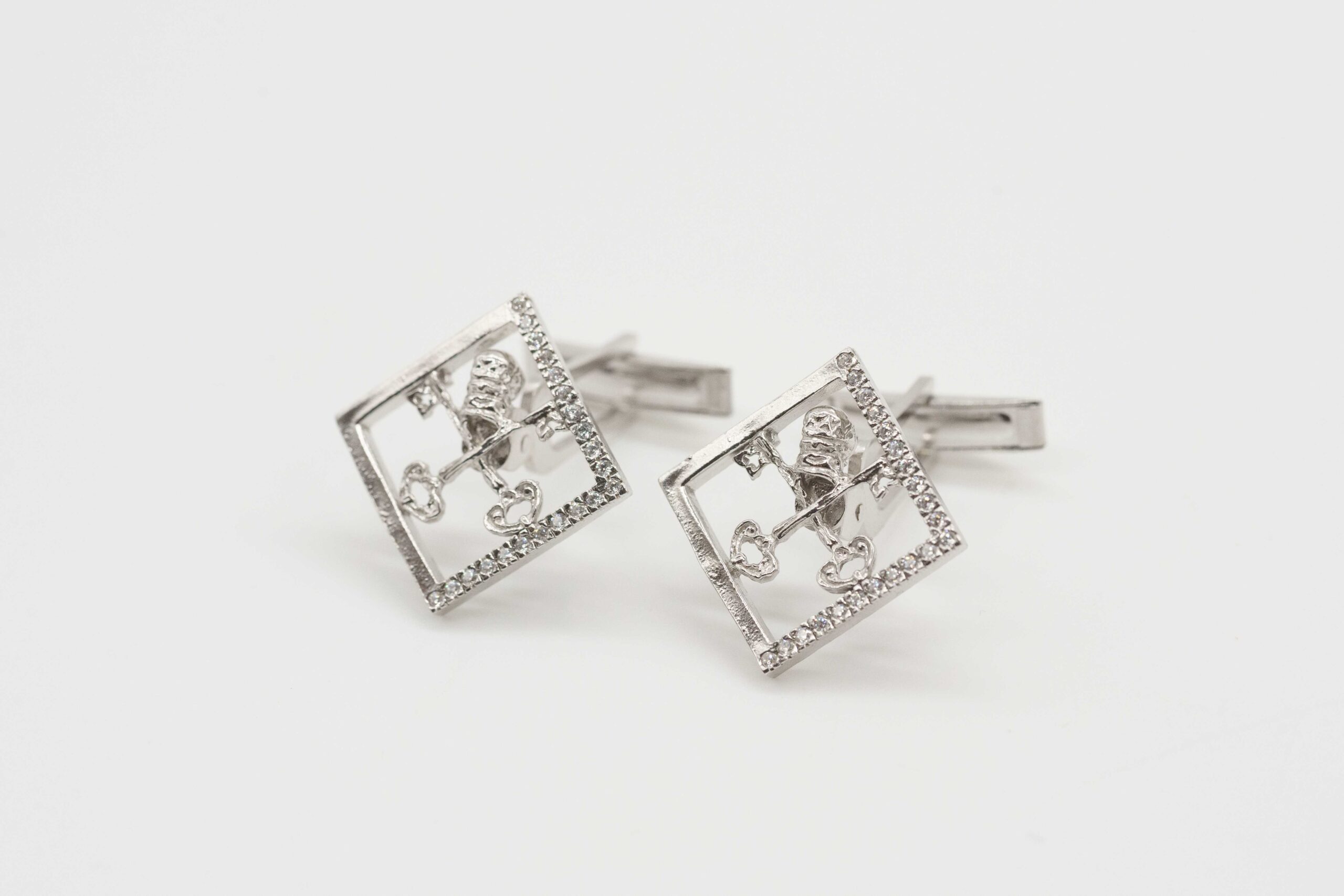 Gemelli da polso in argento 925, dalla forma quadrata e dal design raffinato. Al centro, il simbolo Papale conferisce un tocco di solennità e spiritualità, mentre la bordatura in cristalli Swarovski aggiunge luminosità e prestigio. Un accessorio distintivo, pensato per chi desidera unire fede, eleganza e artigianalità.