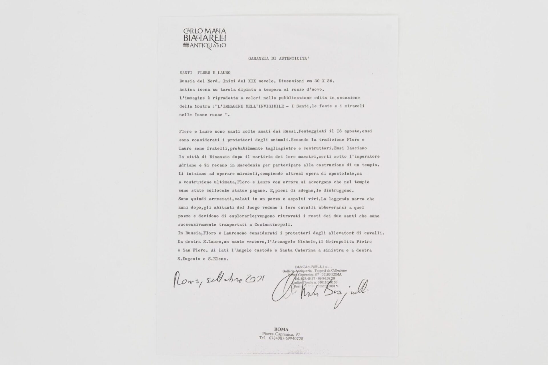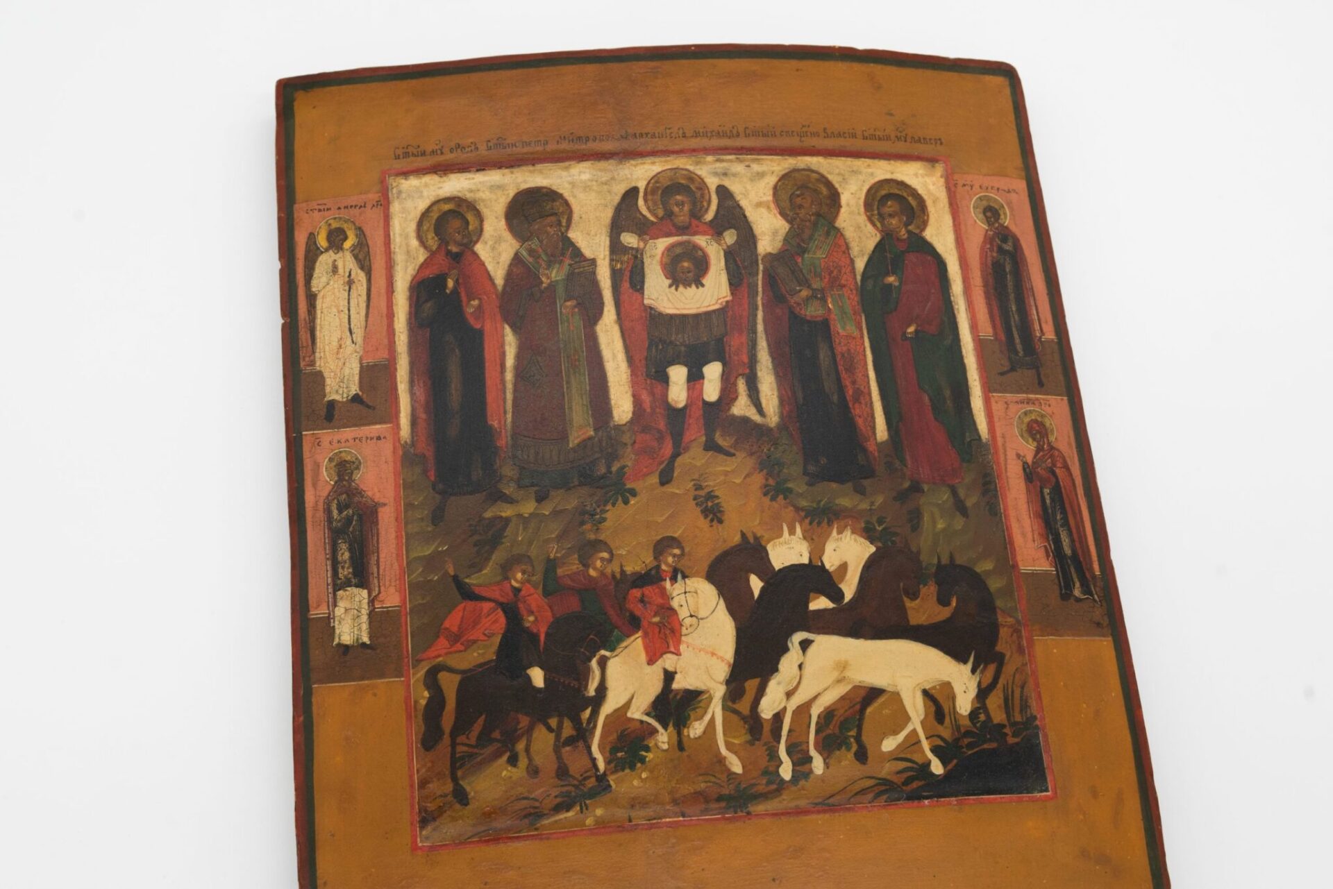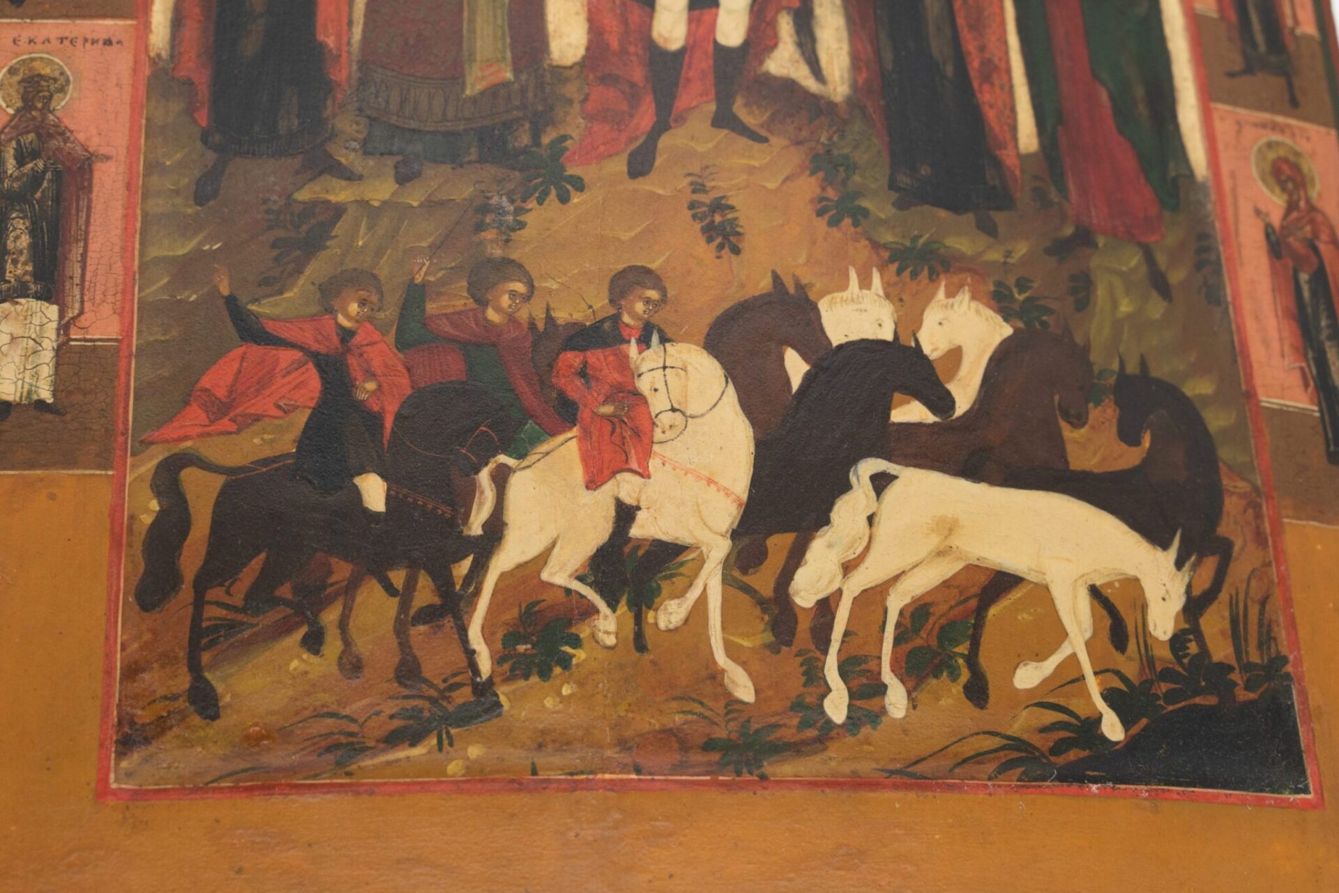 Icona a tempere inizi 800 Ss. Floro e Lauro Russia del nord inizi del XIX sec. comprensiva anche di certificato di autenticità.