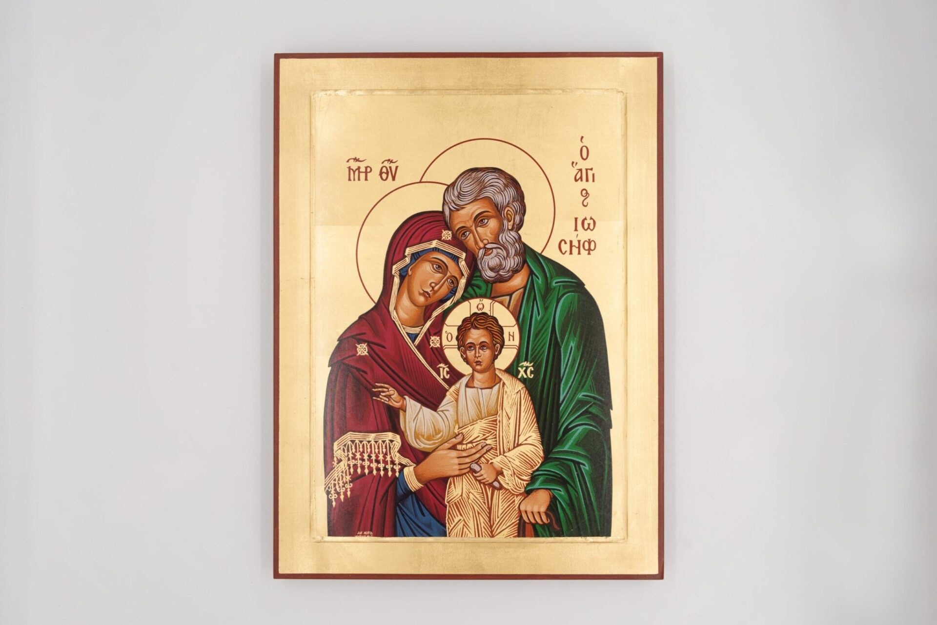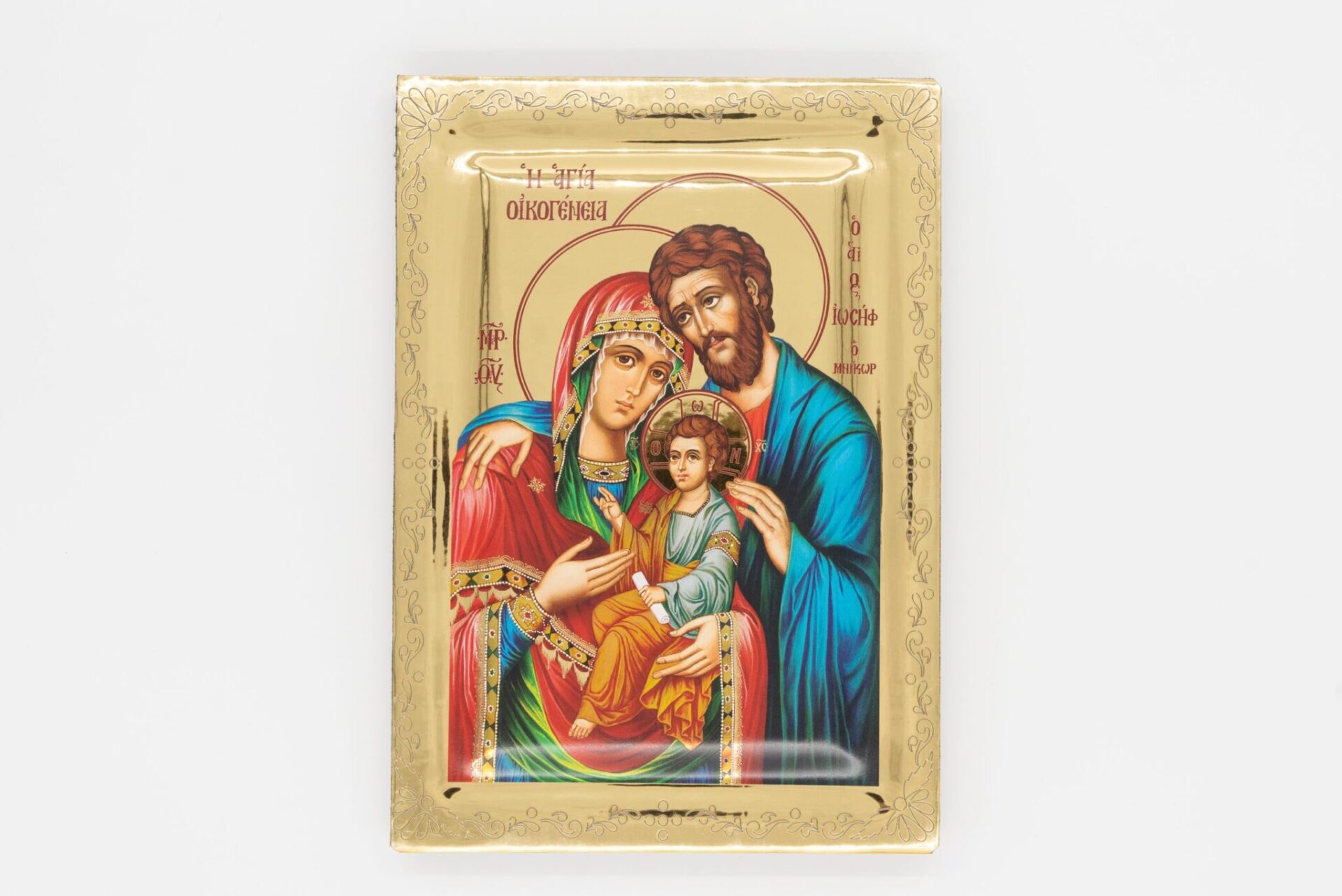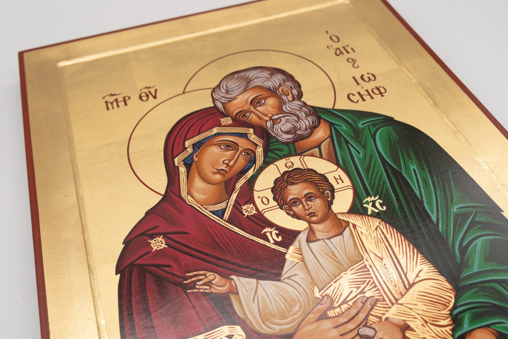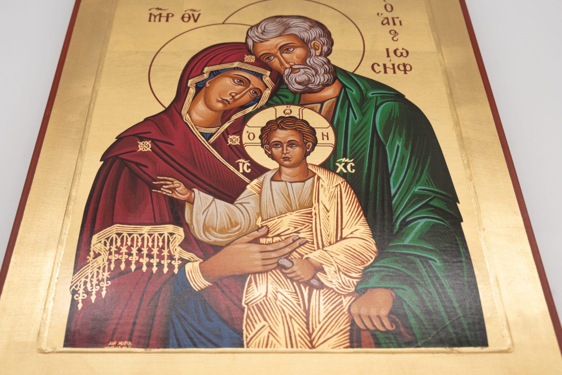 Rappresentazione classica della Sacra Famiglia impreziosita dall’oro che avvolge i soggetti che significa la presenza del Padre che avvolge e protegge la sua famiglia.