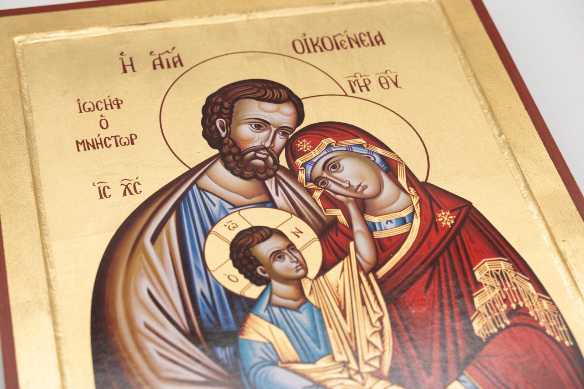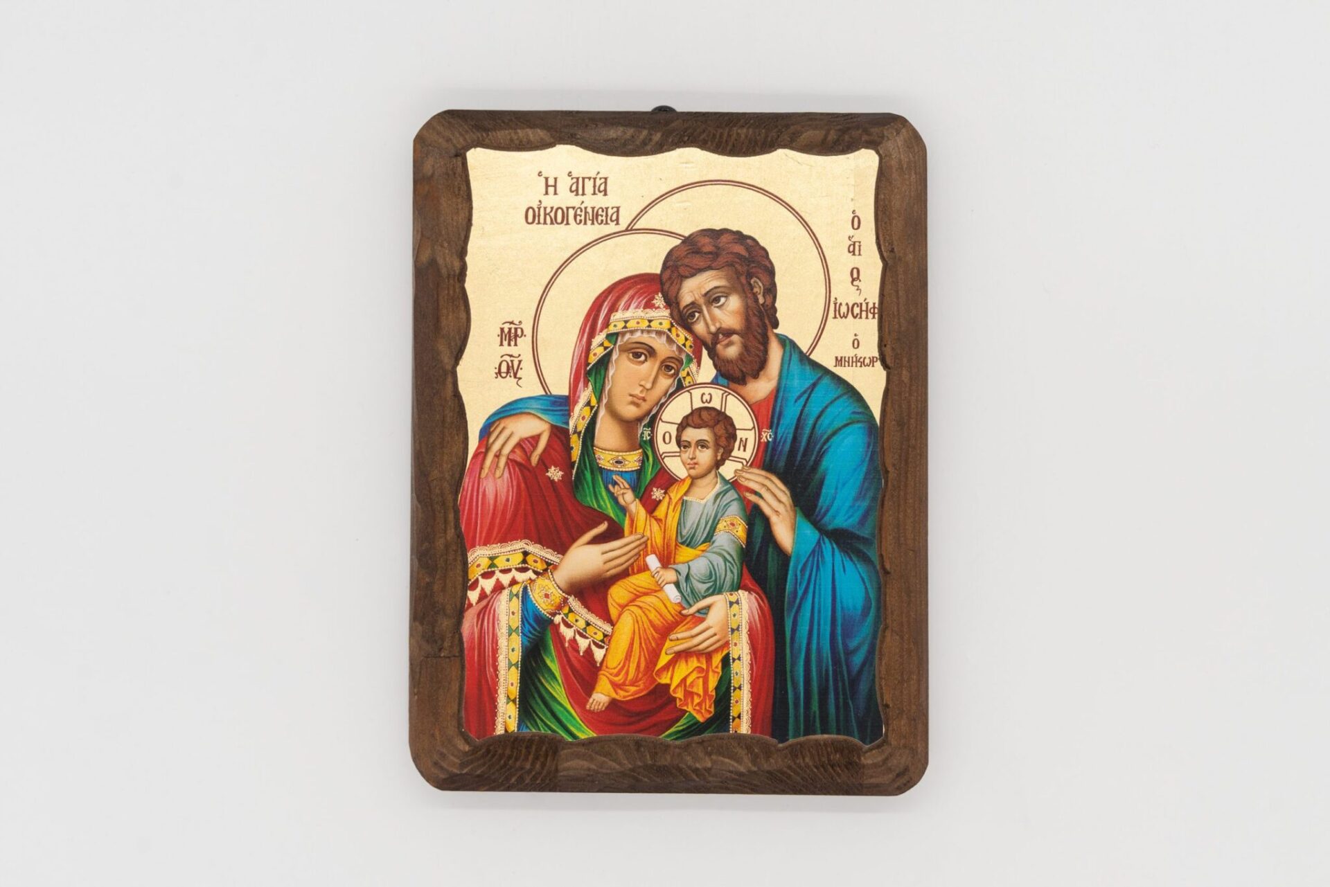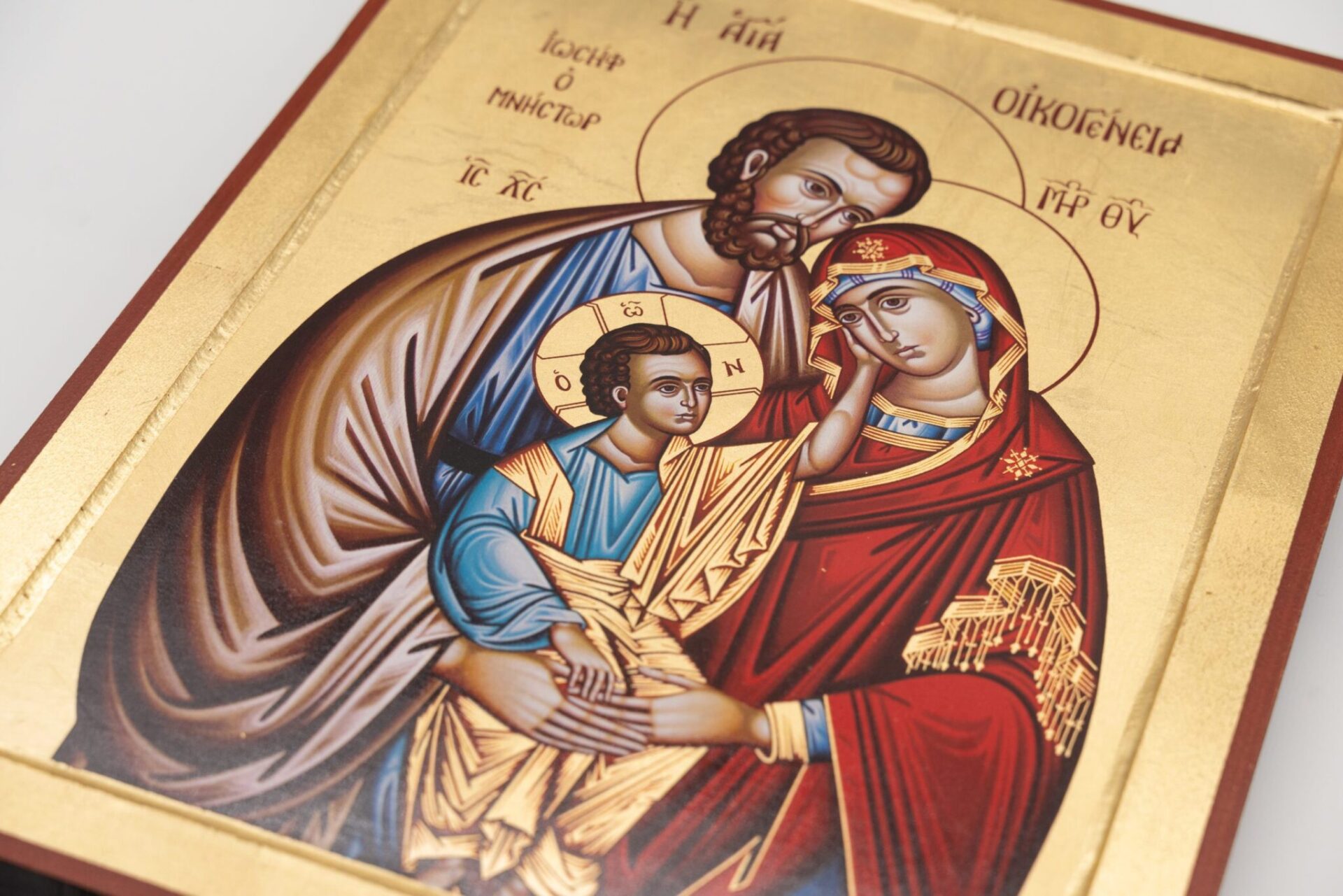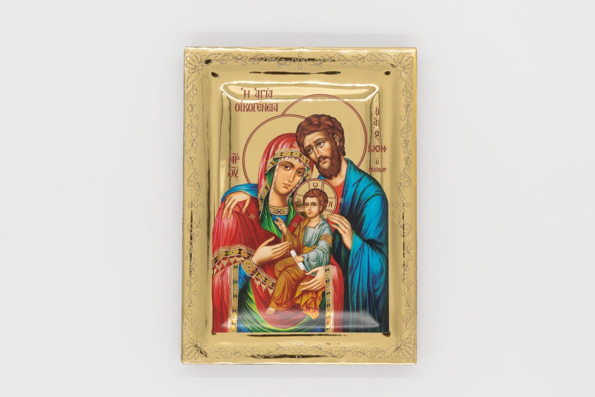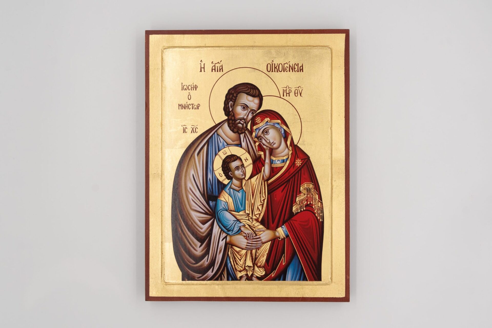 Rappresentazione classica della Sacra Famiglia impreziosita dall’oro che avvolge i soggetti che significa la presenza del Padre che avvolge e protegge la sua famiglia.