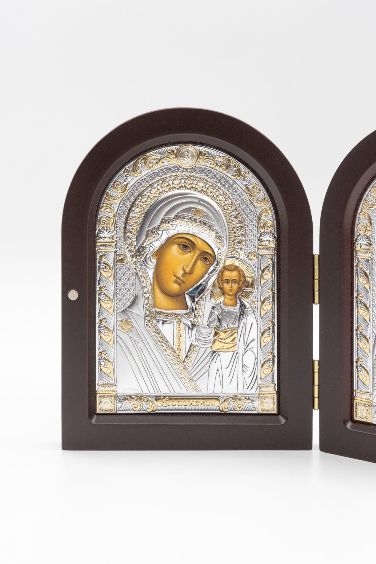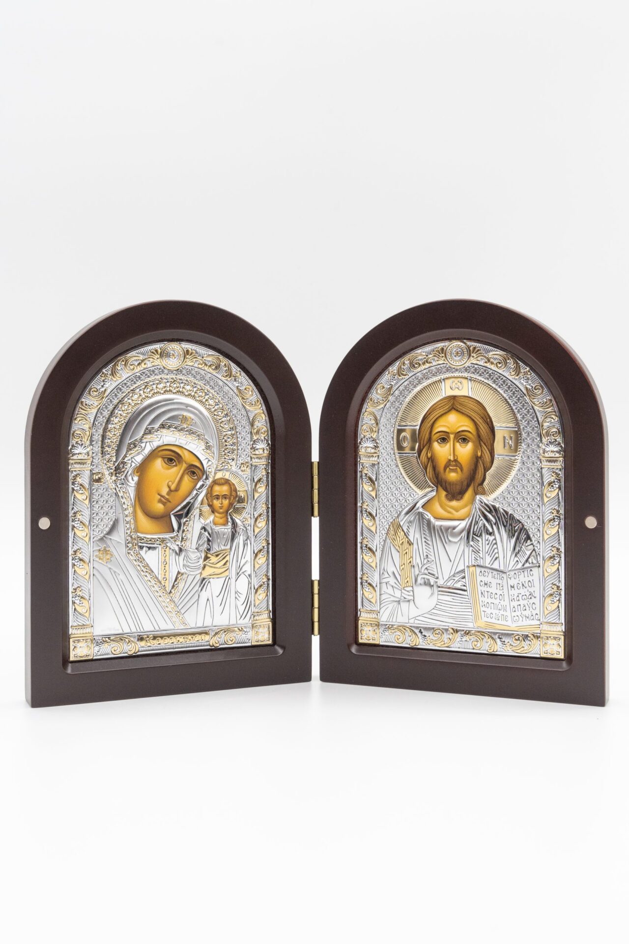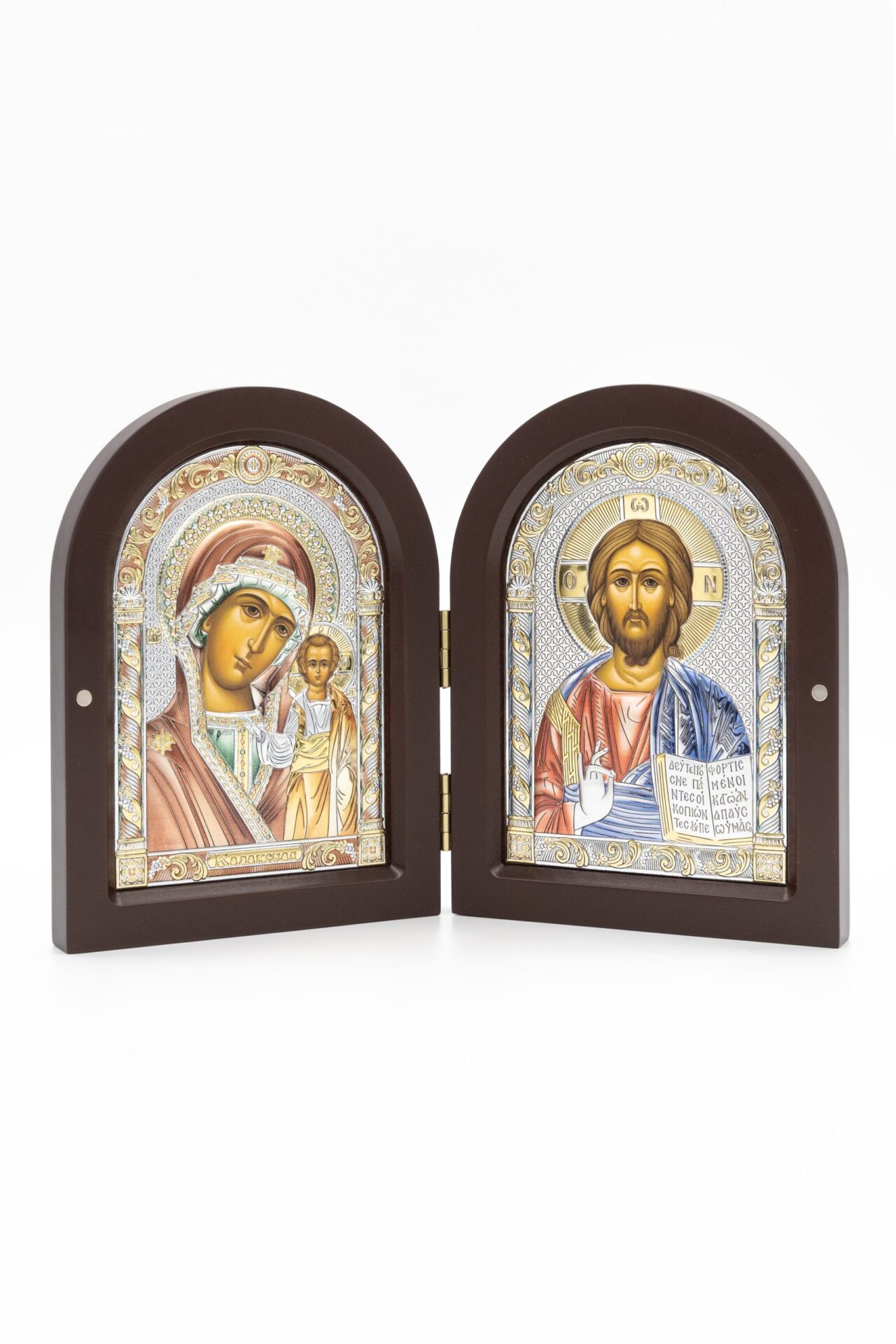 Icona con apertura a libro con la raffigurazione a sinistra la Madonna con Gesù bambino, al lato destro il Cristo Pantocratore.