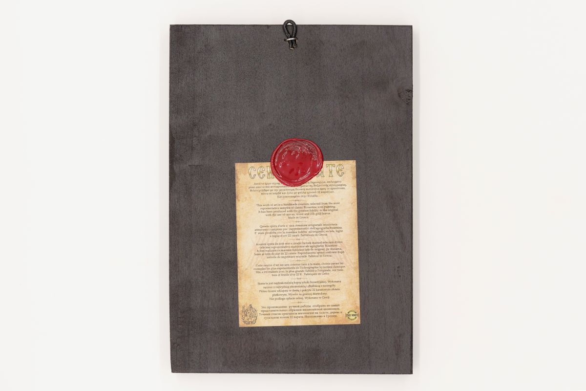 L’icona è dotata di un gancio sul retro e viene fornita con un certificato di autenticità che ne attesta la provenienza.