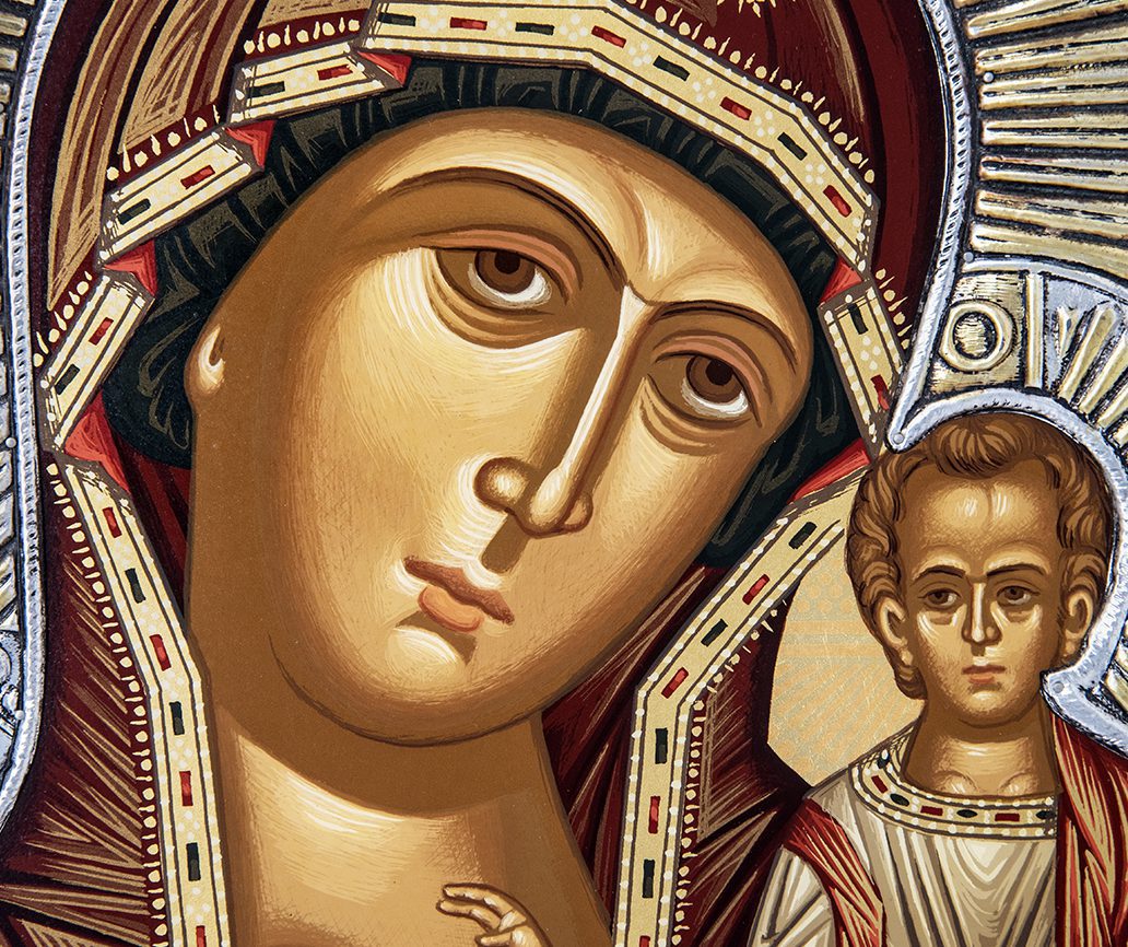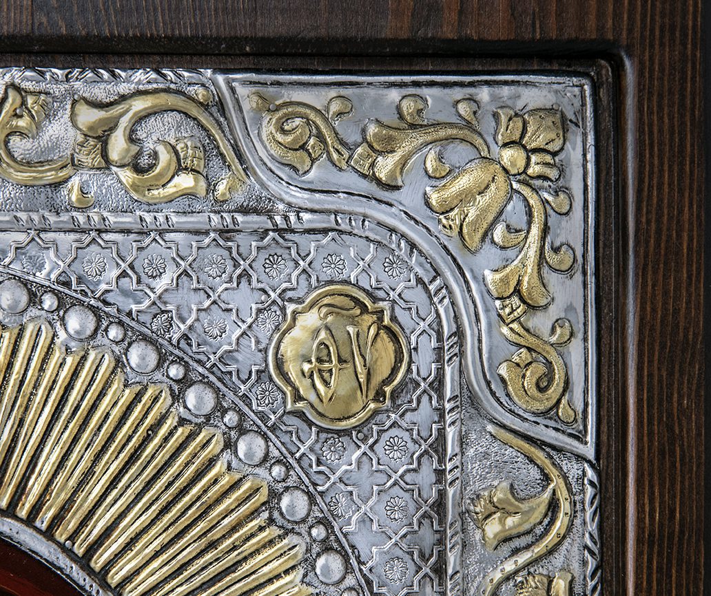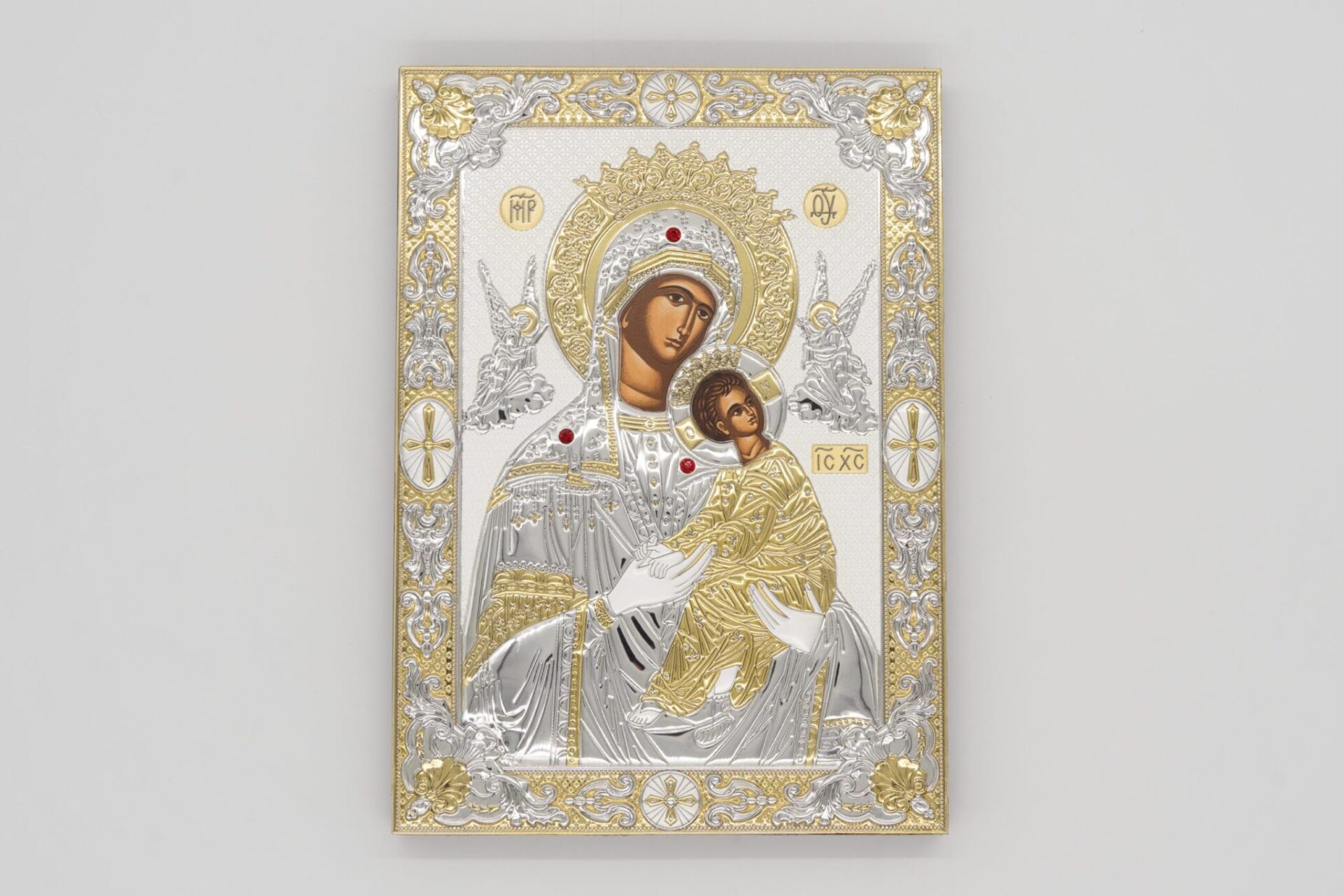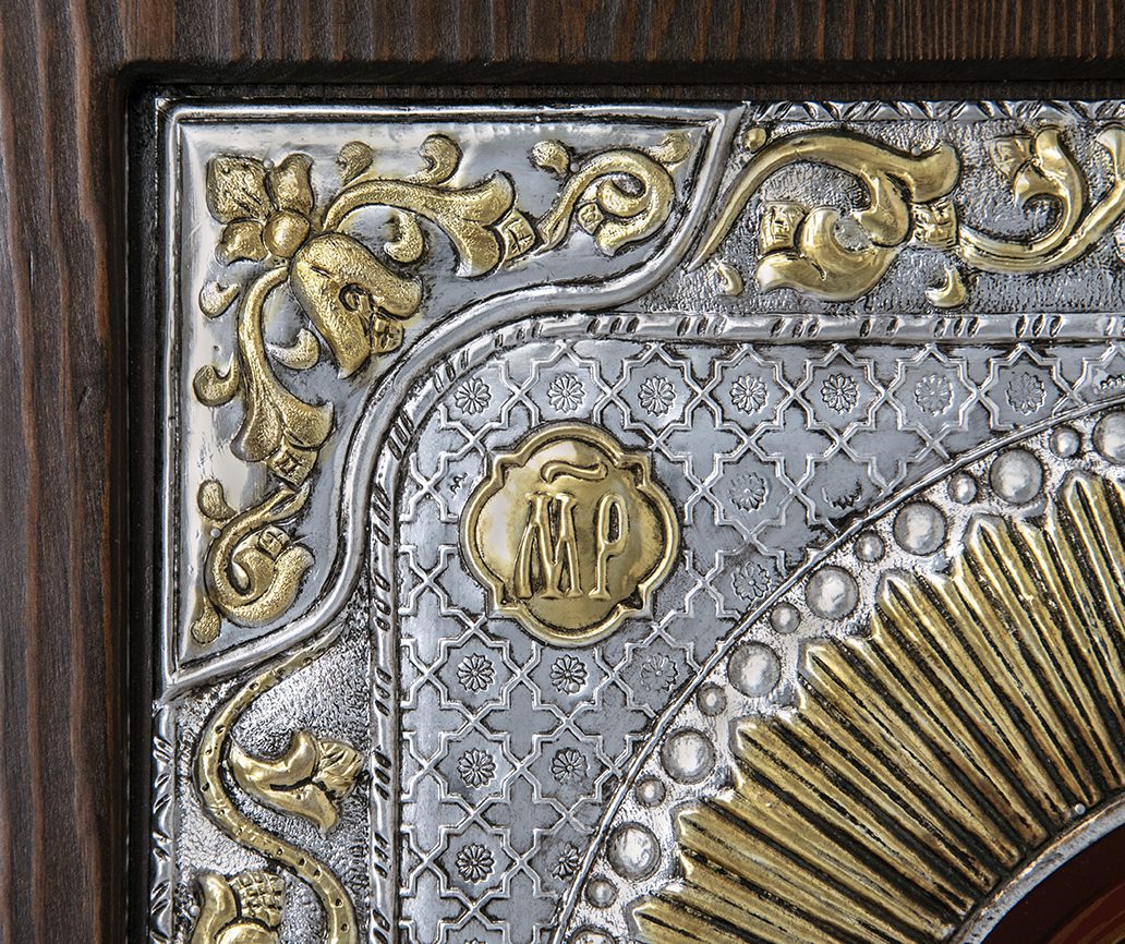 Icona realizzata in argento, raffigura la Madonna con Bambino.