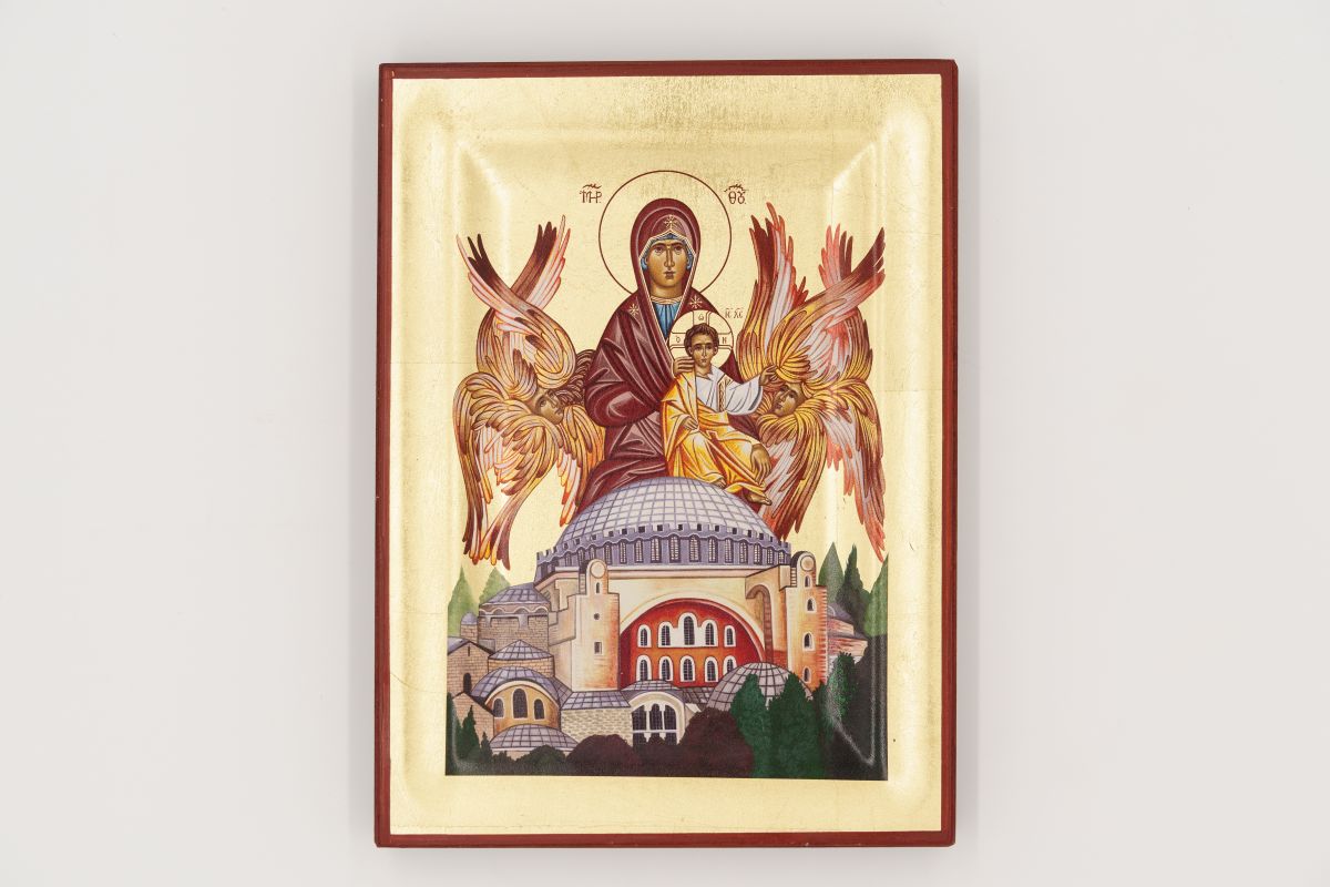 L’icona è dettagliata e colorata, rendendola un pezzo significativo di arte religiosa.
