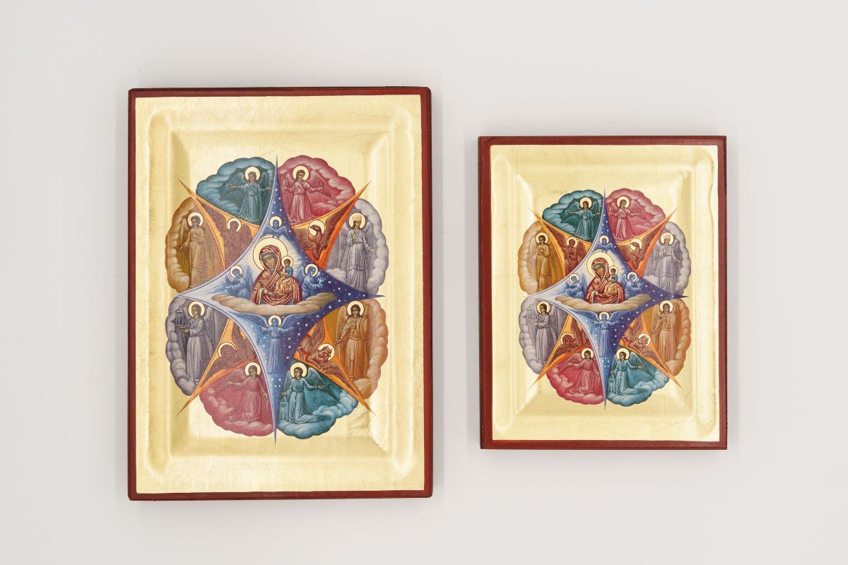 Lo sfondo dell’icona è dorato, tipico nell’iconografia religiosa per significare divinità e santità.