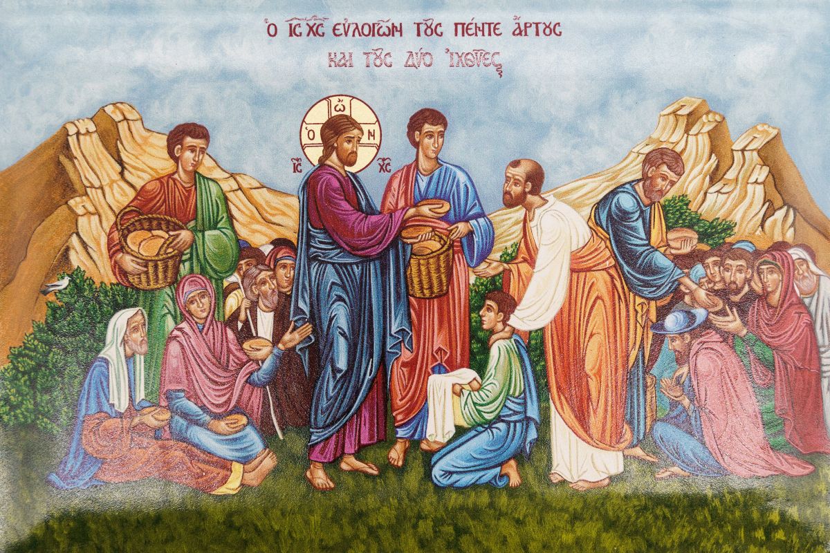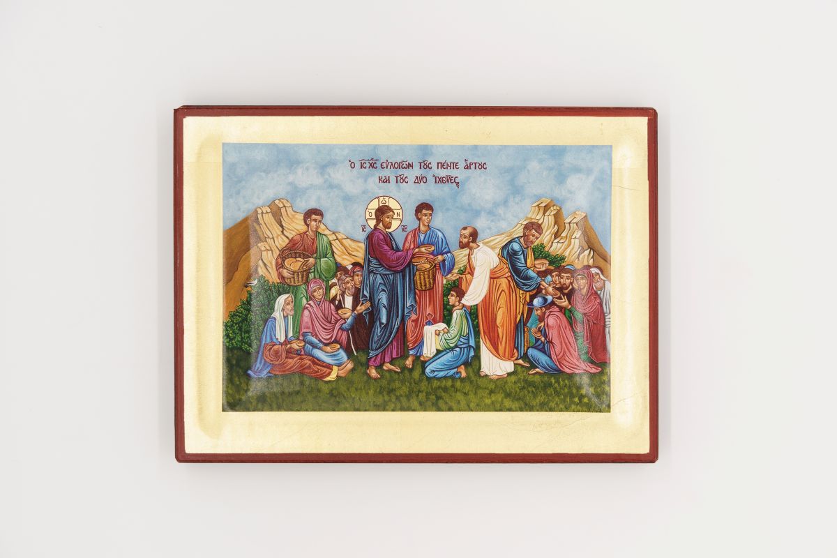 L’icona raffigura il miracolo della moltiplicazione dei pani e dei pesci.