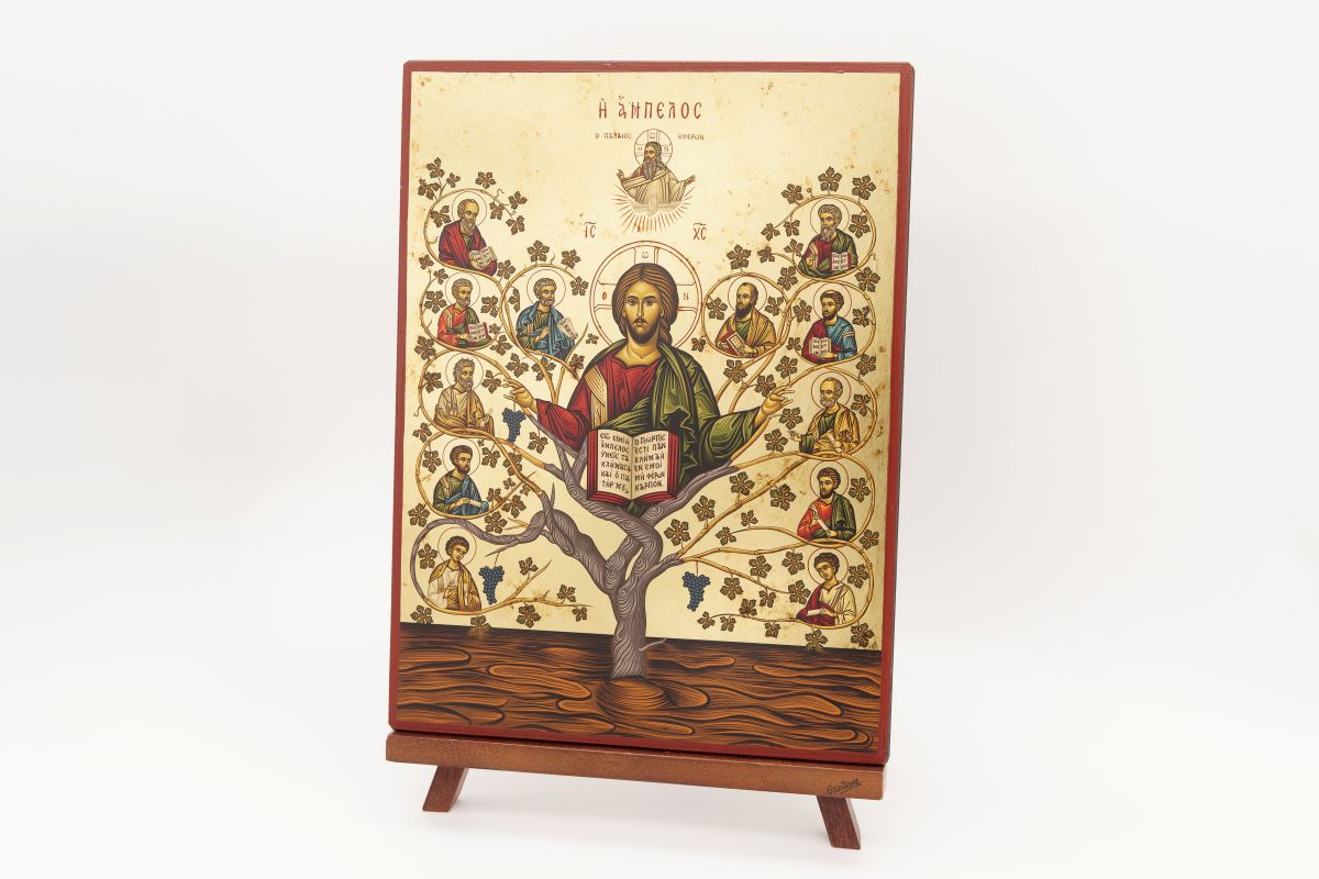 Altre icone nell’immagine includono raffigurazioni di santi e scene bibliche, ciascuna con dettagli intricati e colori vivaci.