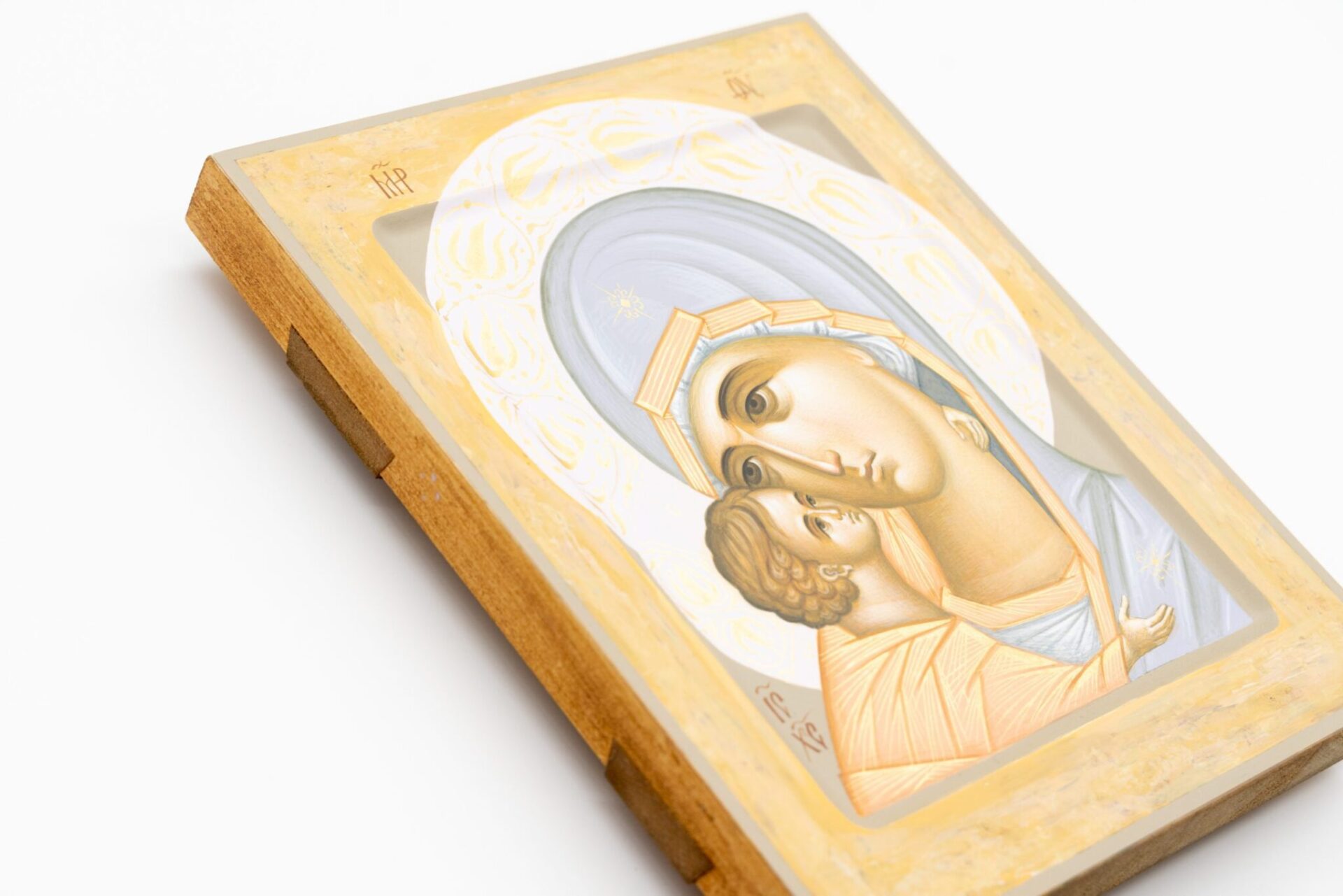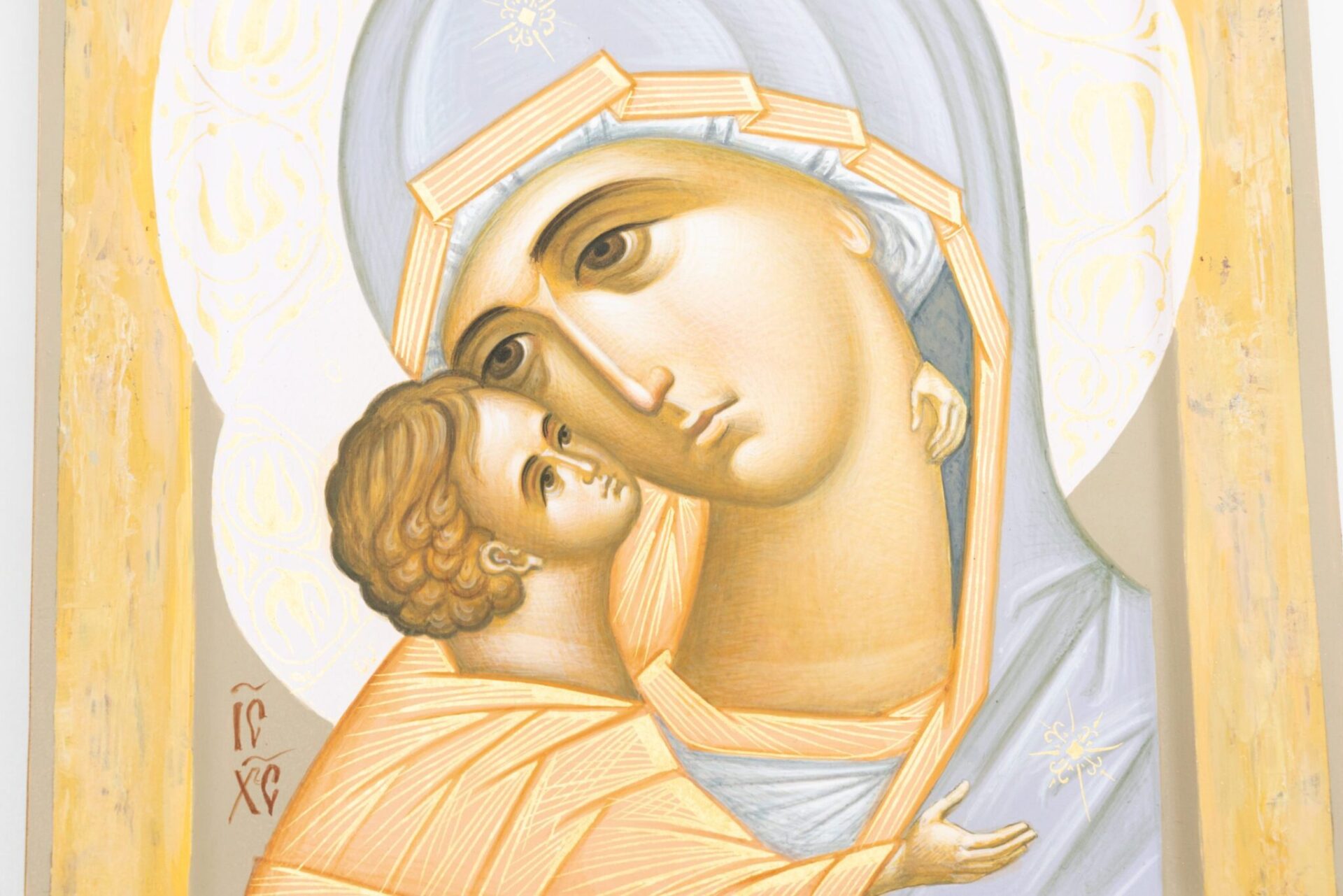 Icona russa dipinta raffigura la Madonna della Tenerezza.