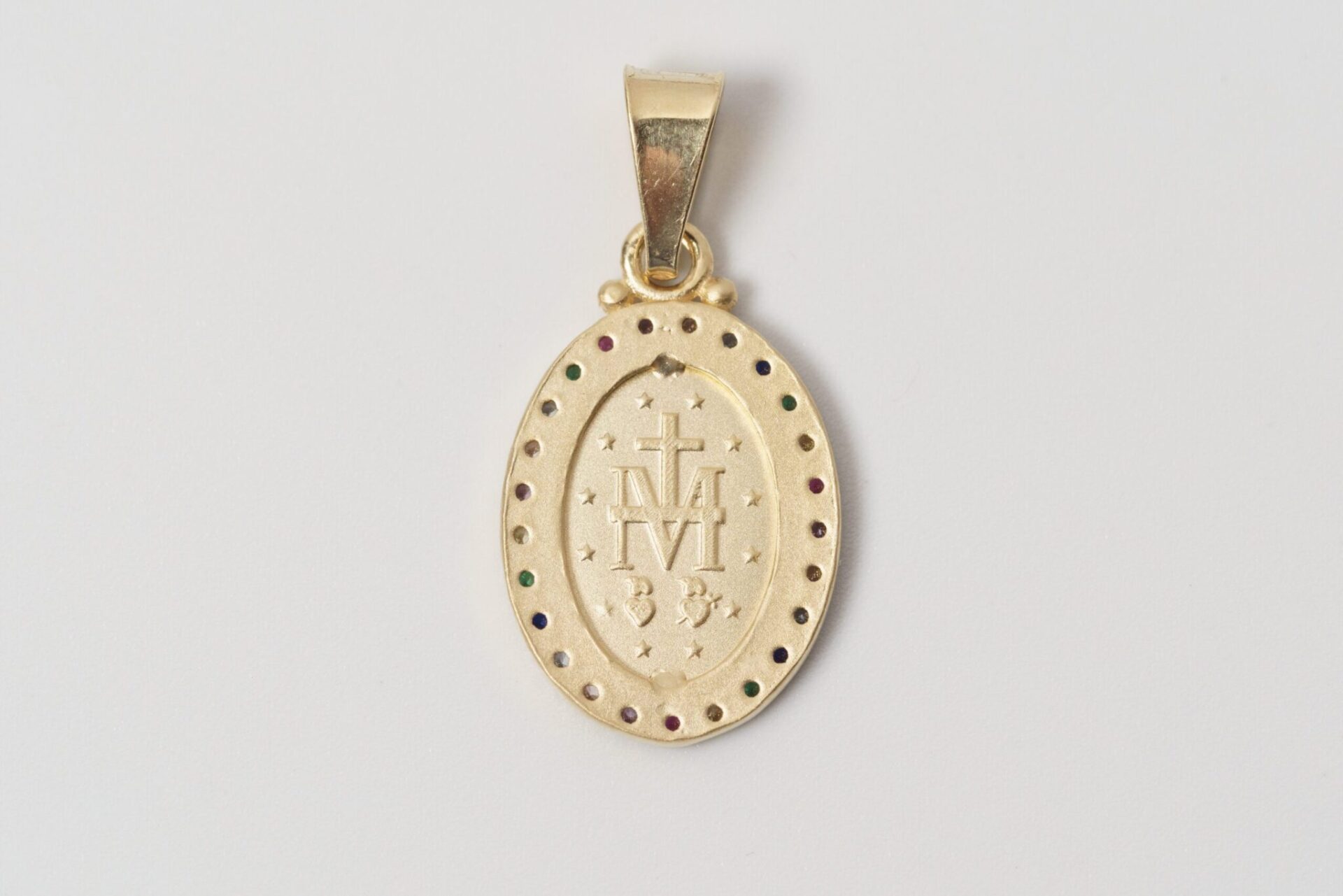 Medaglietta Madonna Miracolosa Argento Dorato e Zirconi Multicolore