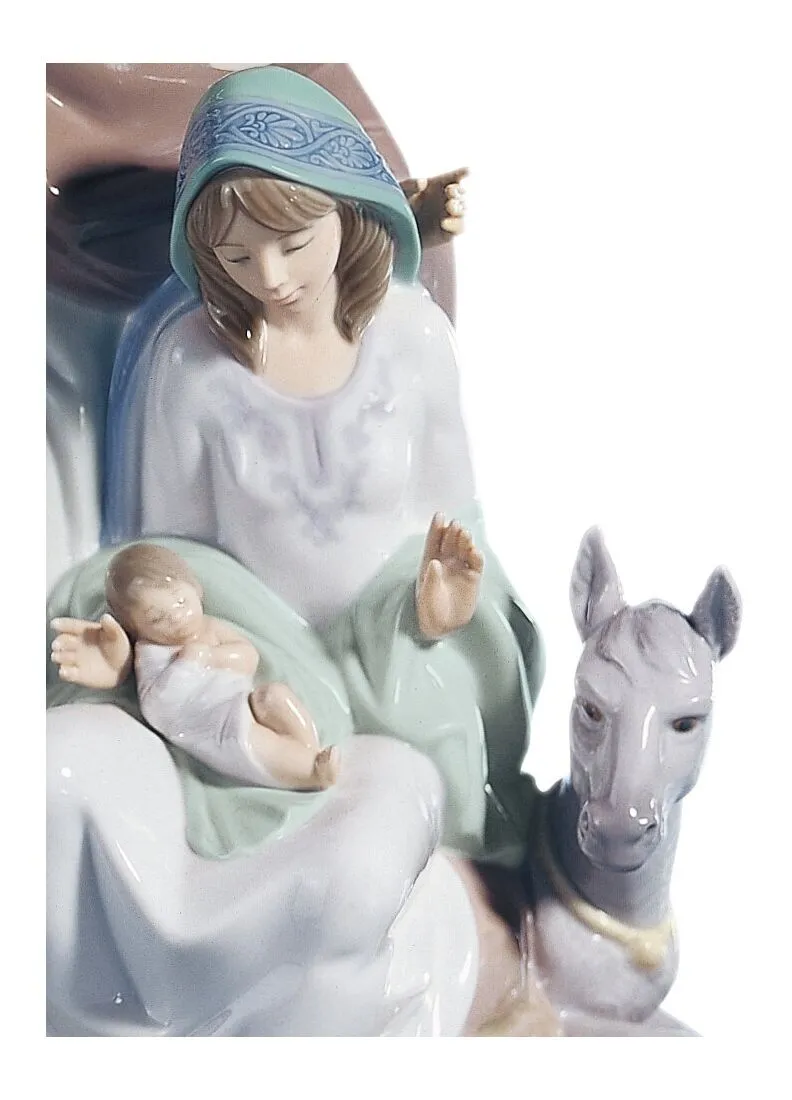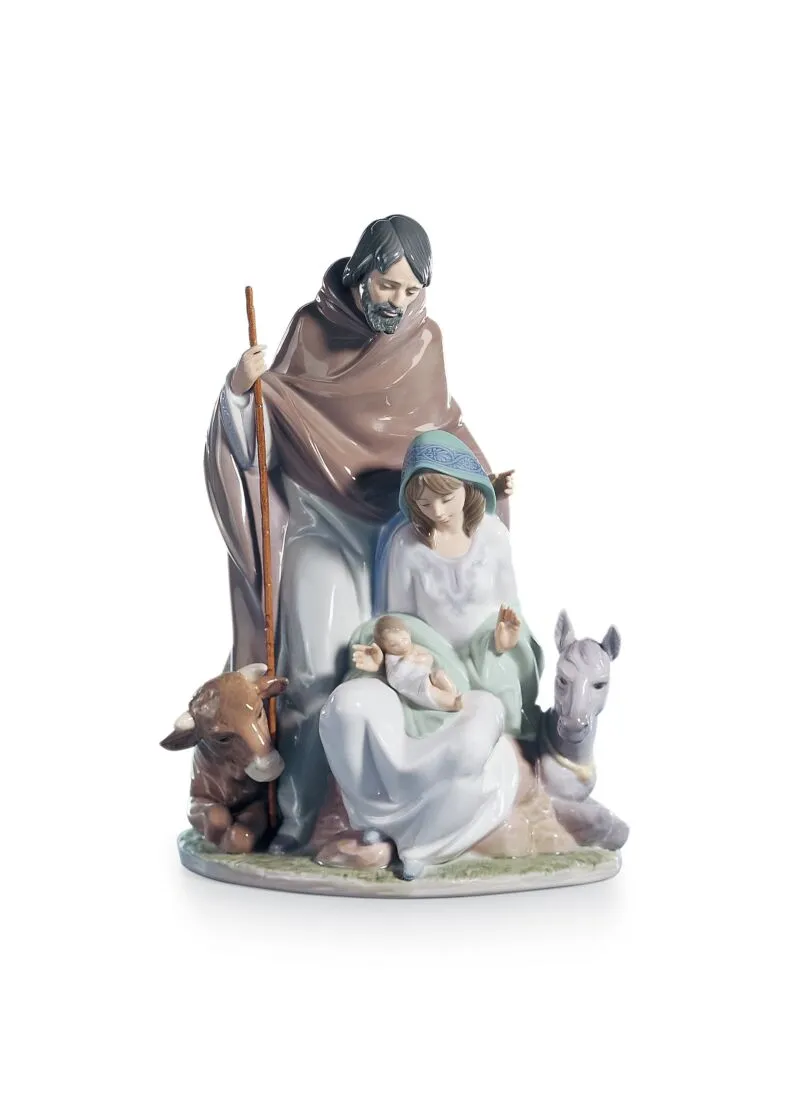 La Sacra Famiglia riposa nella mangiatoia circondata dal bue e l’asinello. È la scena più importante per tutti i cristiani nel mondo. Un pezzo in porcellana lucida decorato con la classica tavolozza dei colori pastello Lladró, destinato a creare un’atmosfera calda e accogliente nei giorni del Natale.
