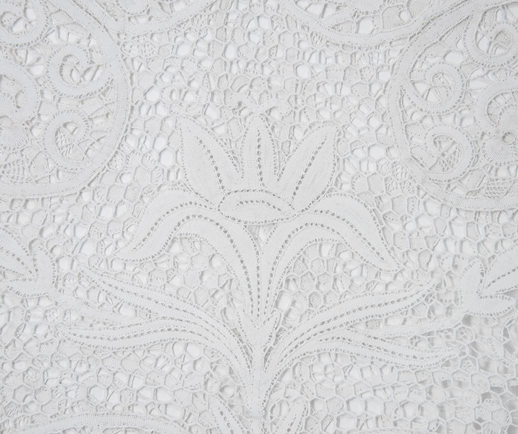 Pizzo al tombolo di Cantù interamente realizzato a mano. Il pizzo di Cantù è un merletto a tombolo o a fuselli prodotto tradizionalmente ed in modo artigianale a Cantù. Il Pizzo di Cantù , è un merletto prodotto intrecciando fili, solitamente cotone, lino o seta, che vengono avvolti su fuselli. Fondo 280×50 cm manica 54×35 cm