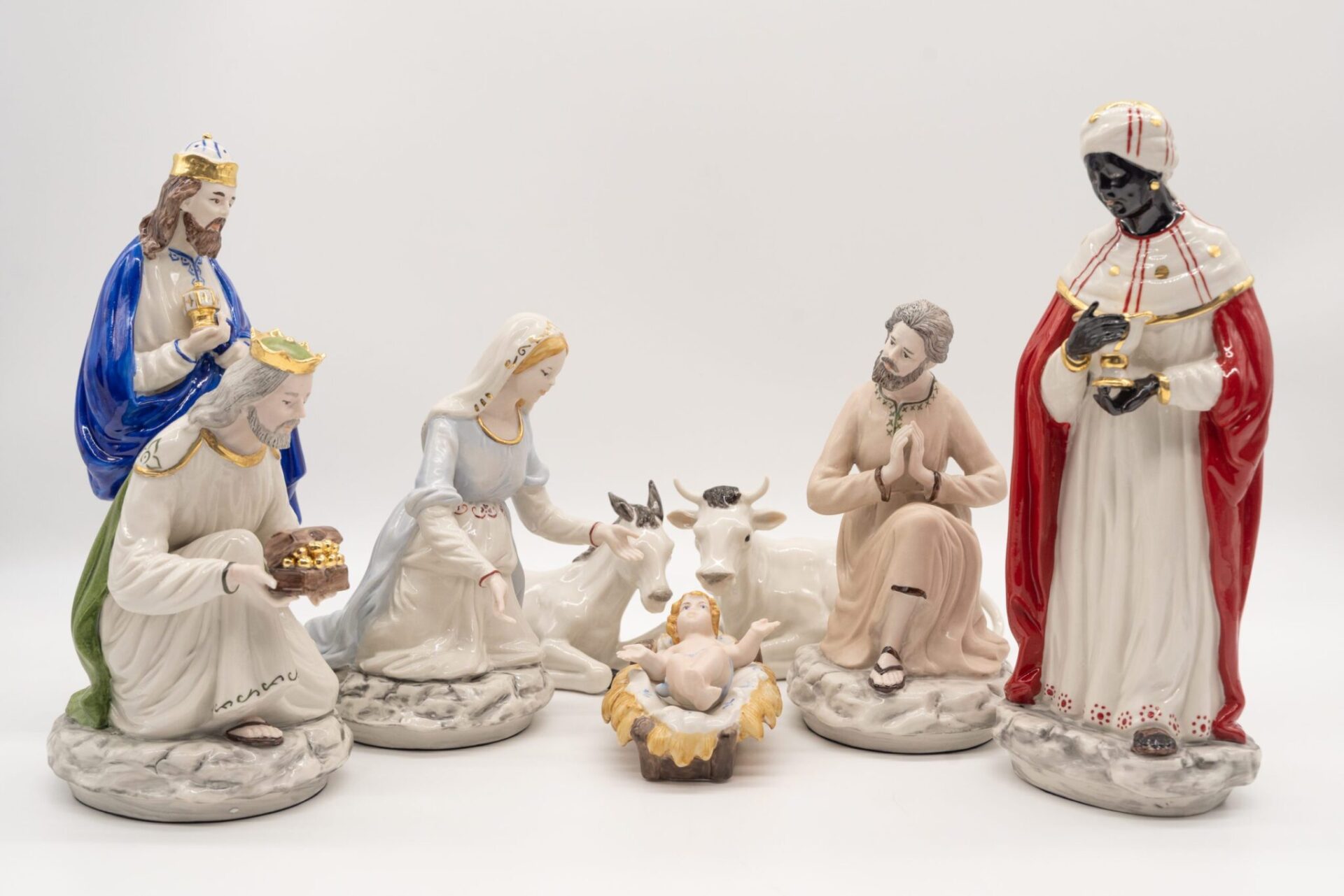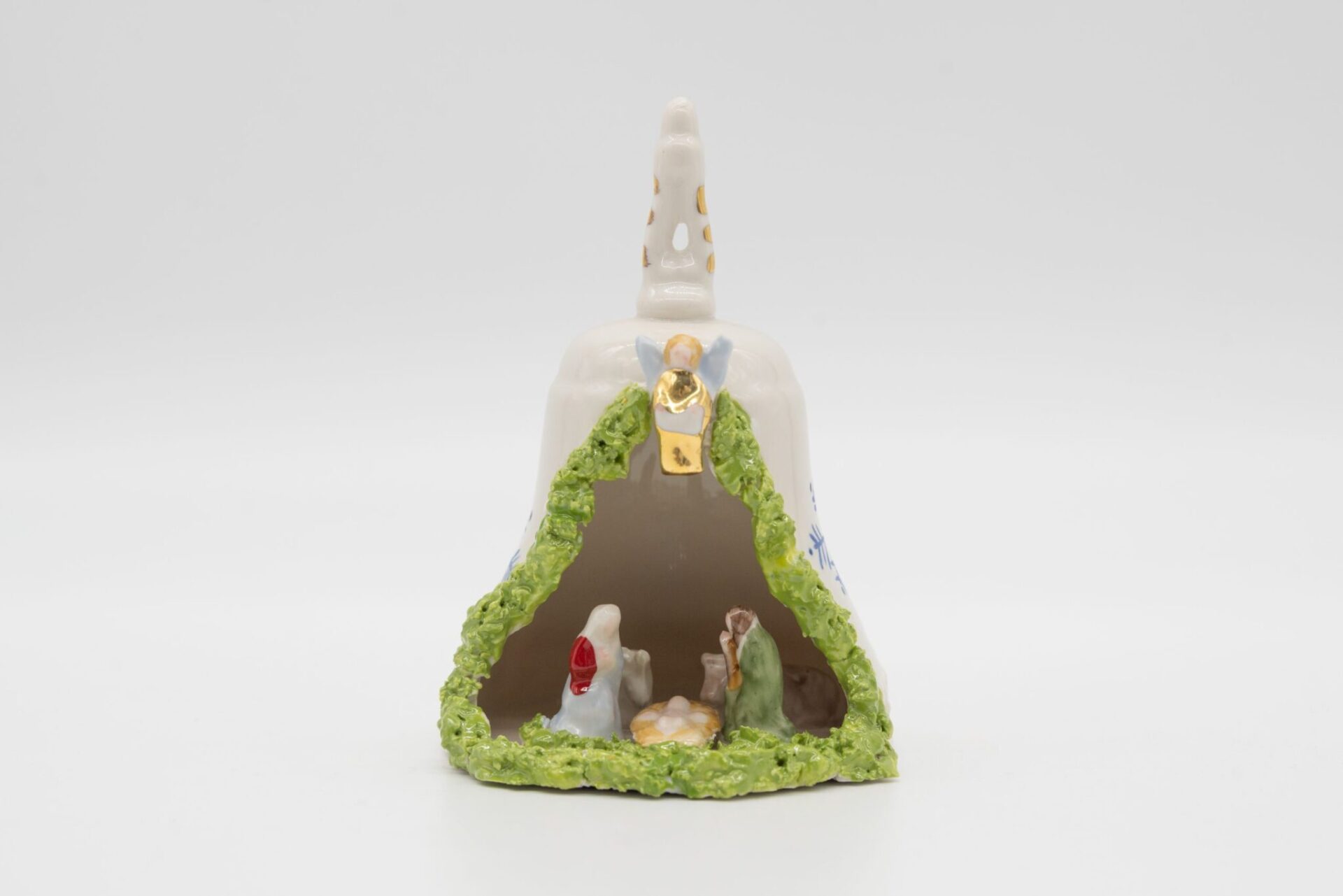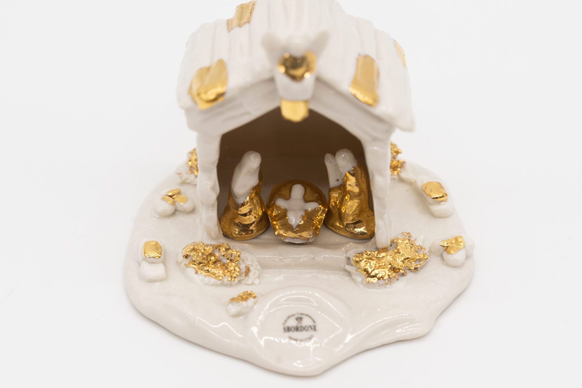 Presepe con capanna ed angelo in porcellana Capodimonte.