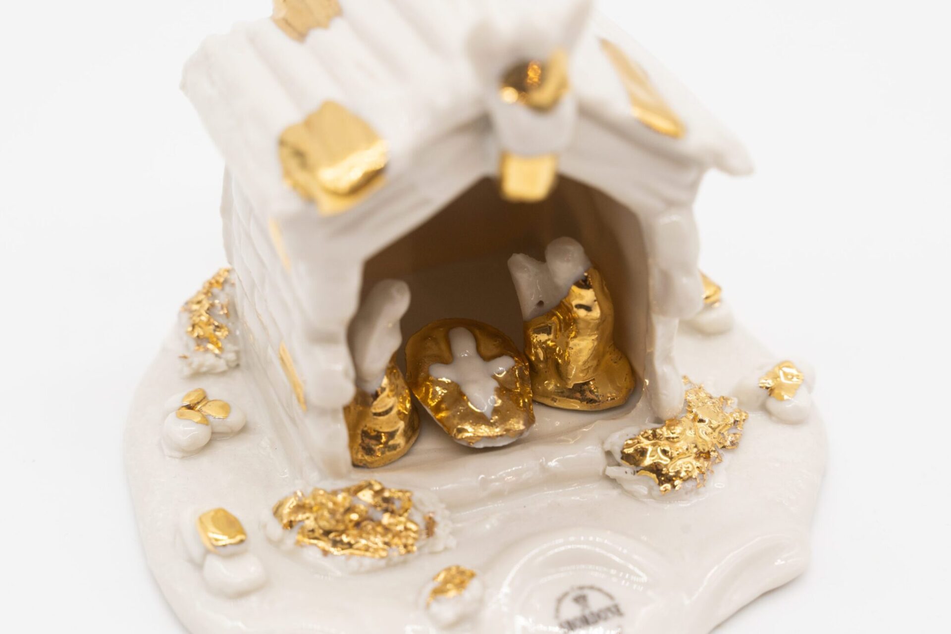 Dipinto con smalto di colore bianco, dettagli in oro 24 kt.